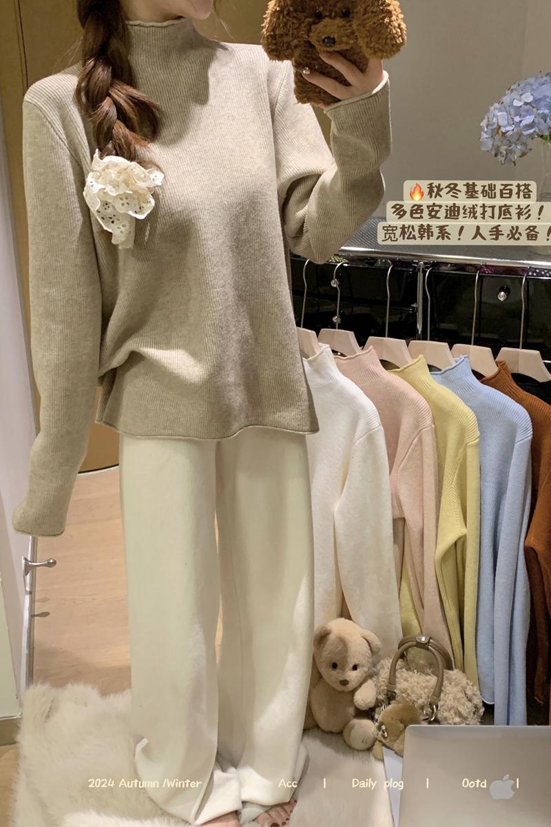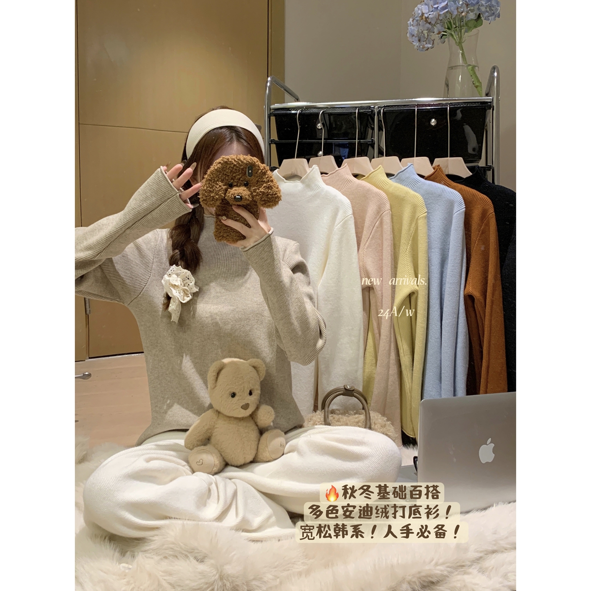 가을 겨울 한국 스타일 폴로 칼라 버튼 컬러 블록 디자인 앤디 벨벳 스웨터베이스 스웨터
