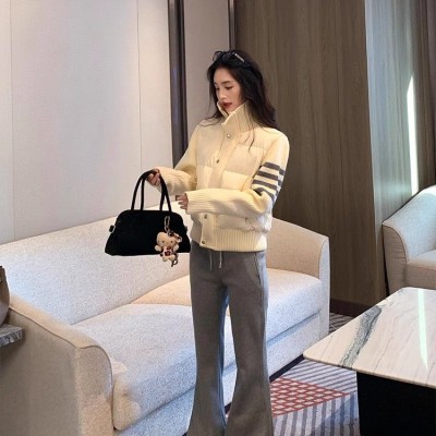 인터넷 그림 네 개 바 더블 색상 트렌드 한국 스타일 베이지 색 스트라이프 패치워크 면 의류 여성 겨울 고급 센스 작은 키