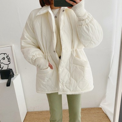 chic 한국 가을과 겨울 패션 레트로 링 그리드 펌프 로프 허리 어린 양 머리 안감 따뜻하게 지내라. 느슨한 코튼 코트 외투