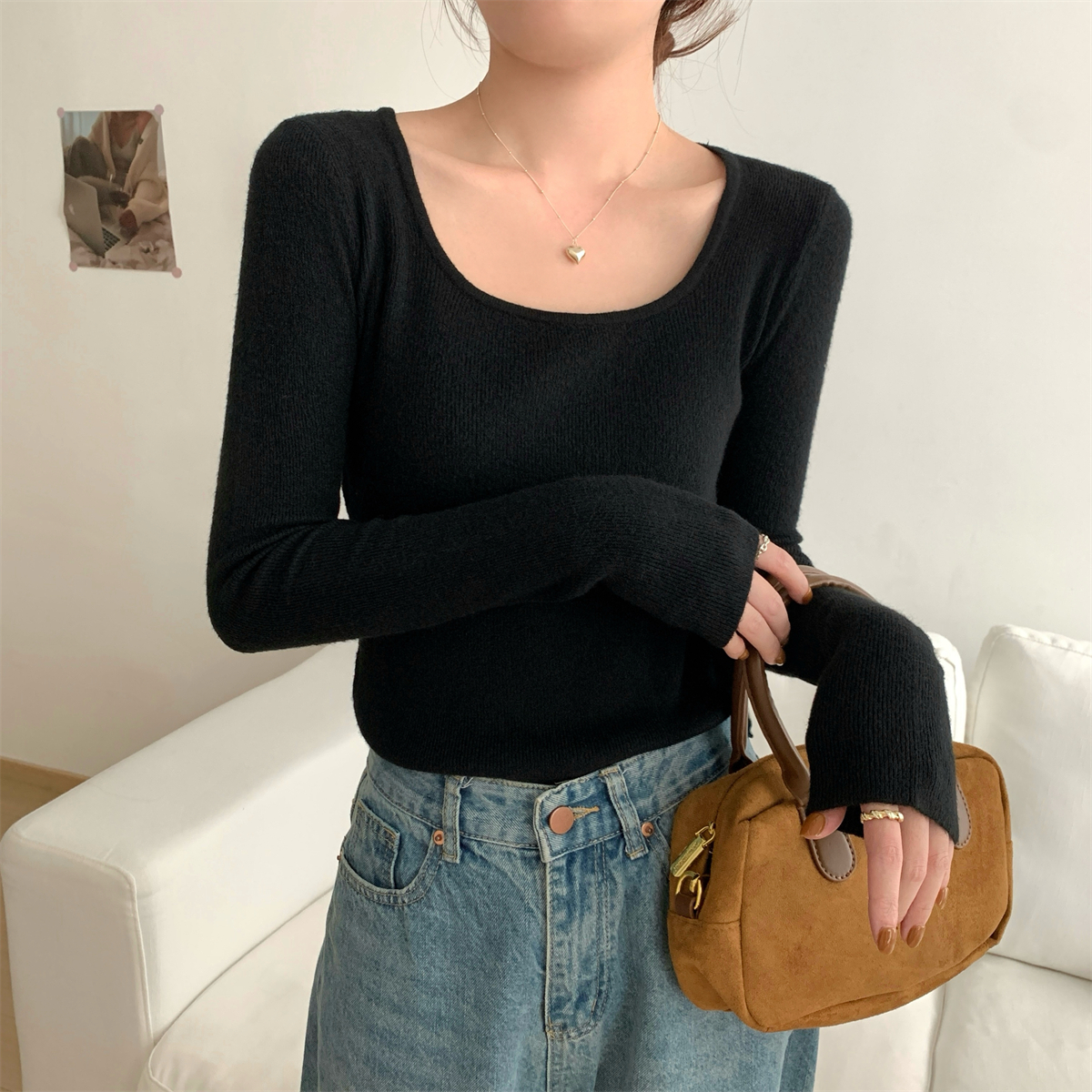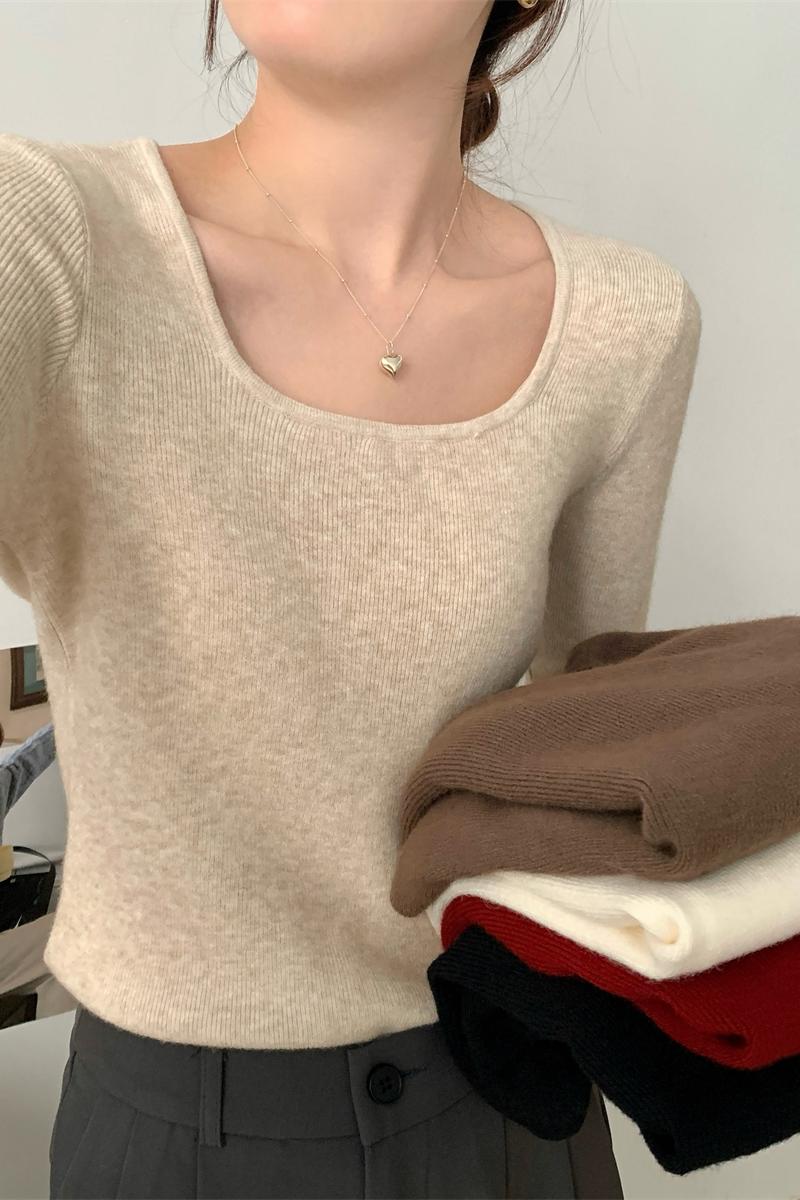 가을 겨울 슬림하고 순수한 홀터 넥 슬림 앤디 벨벳 스웨터베이스 스웨터 탑 한국어 버전