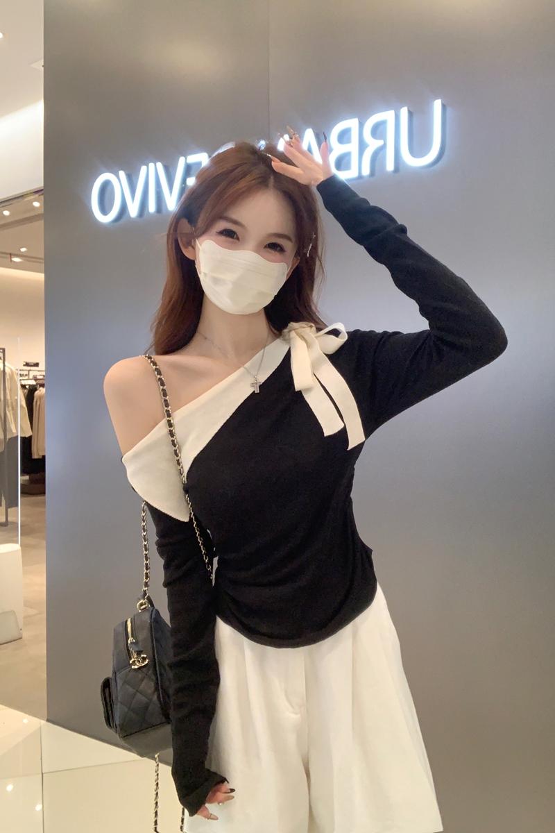 가을 겨울 V- 넥 대비 컬러 대학 트위스트 자수 스웨터 긴 슬리브베이스 탑 스웨터 여성