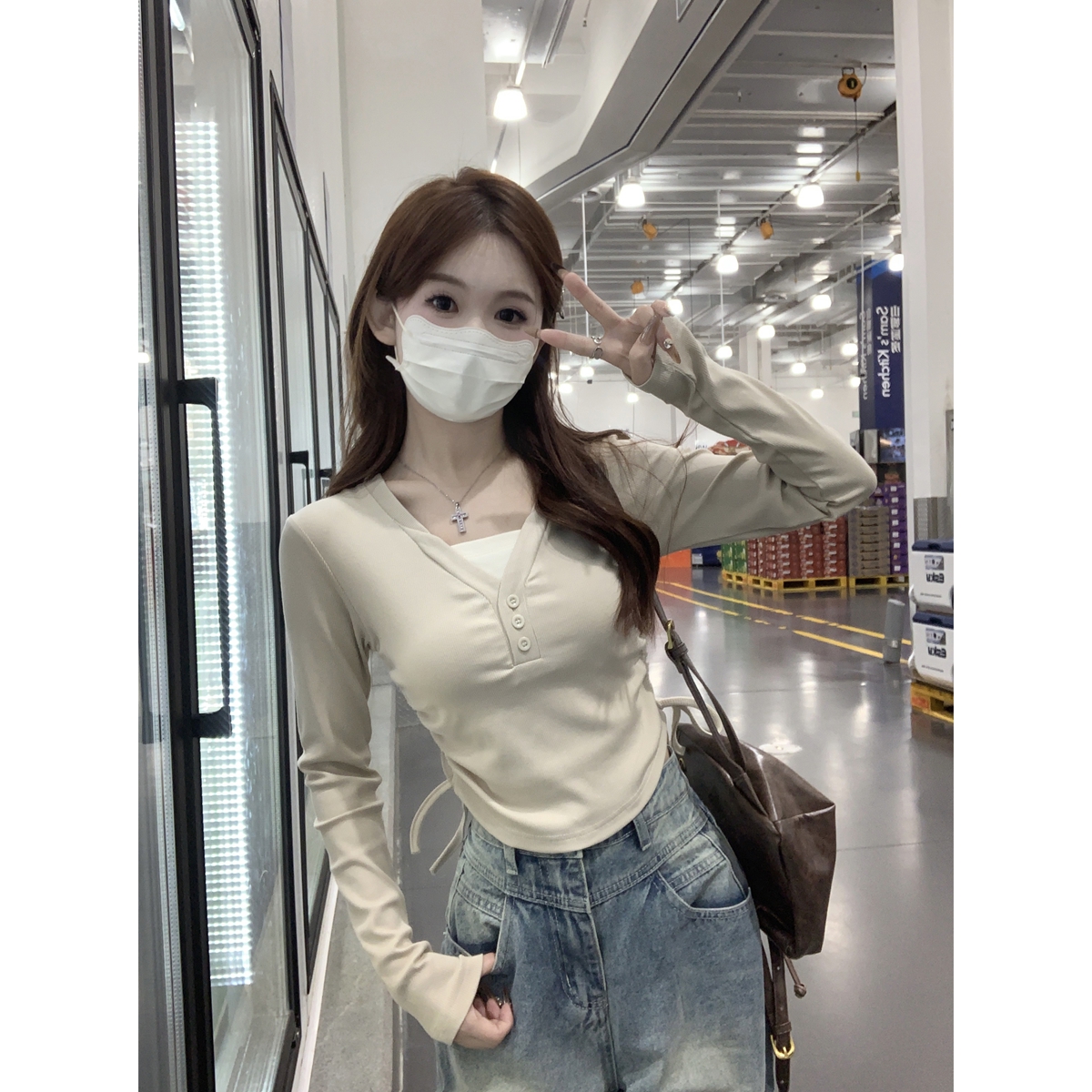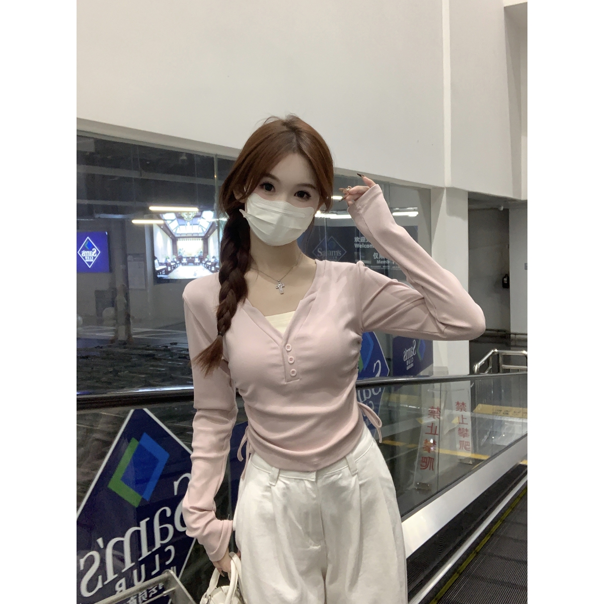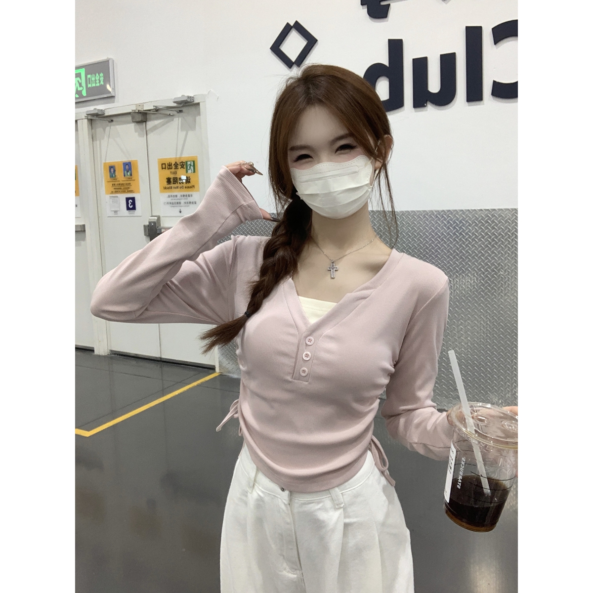 가을 겨울 V- 넥 기질 트럼펫 슬리브 앤디 벨벳 스웨터 긴 소매베이스 스웨터 탑