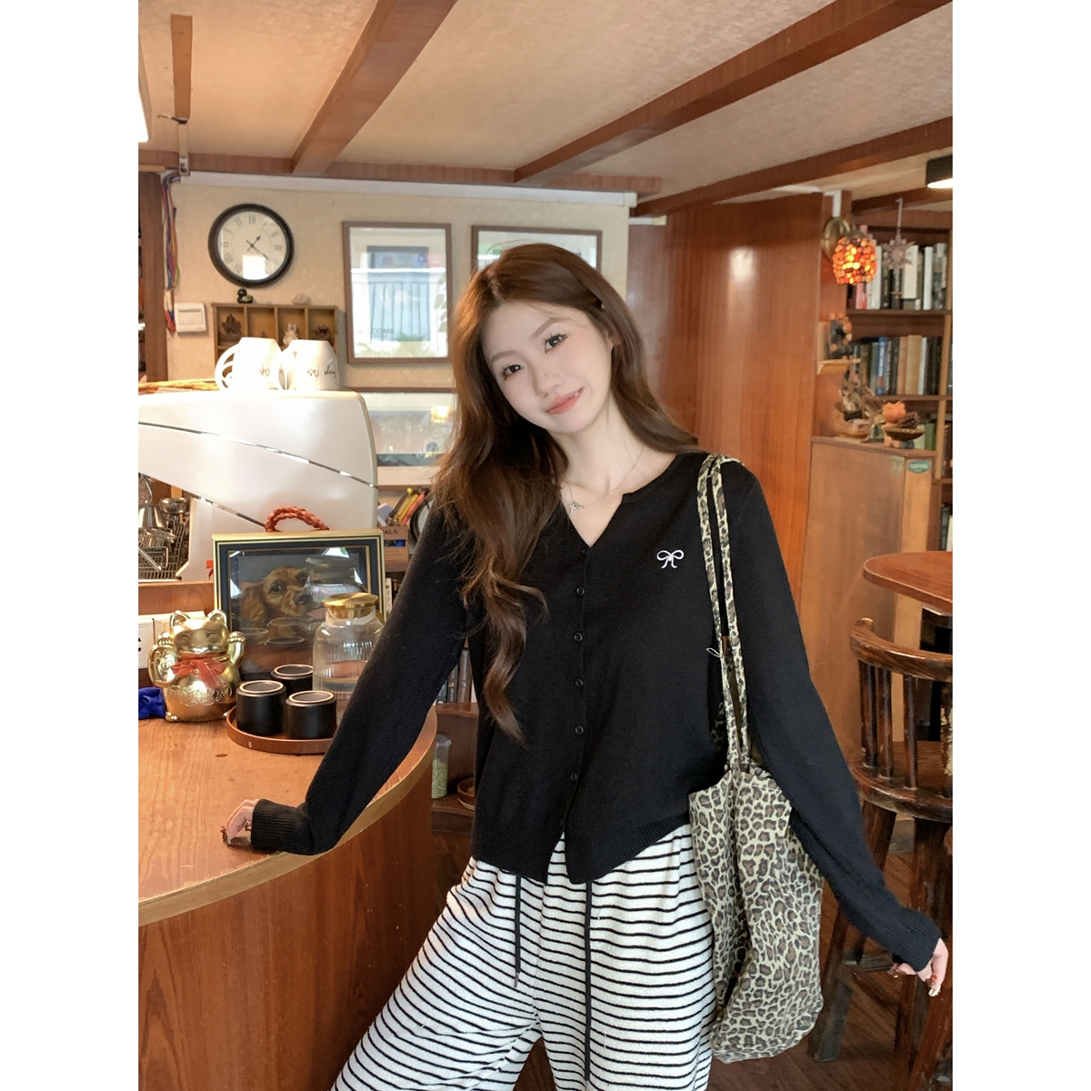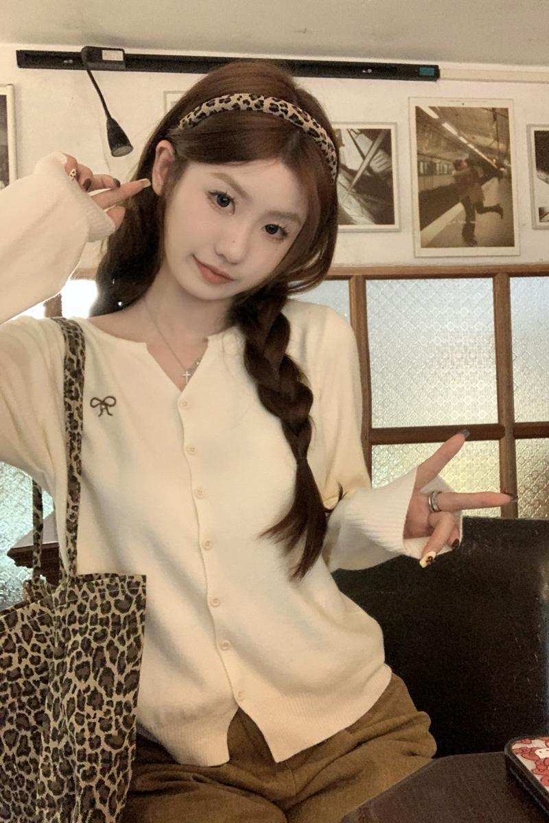 한국어 버전 순수한 크로스 꽃 디자인 앤디 벨벳 니트 긴팔베이스 스웨터 탑