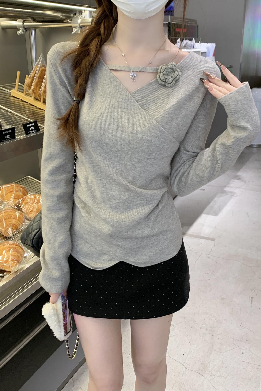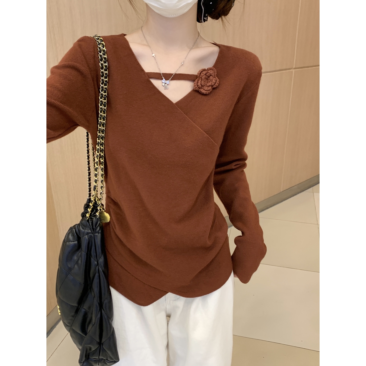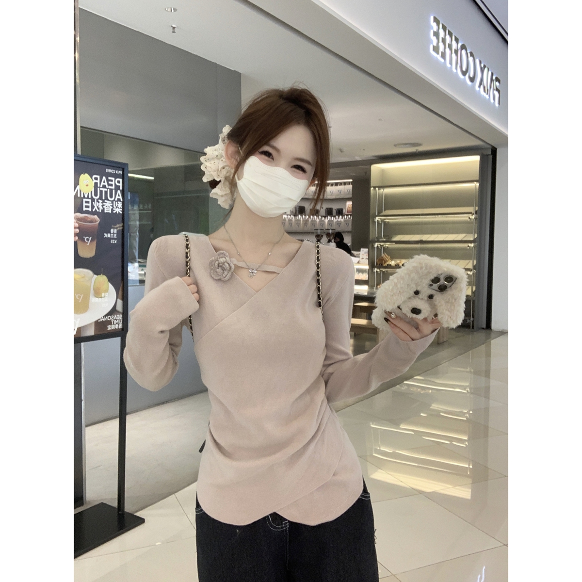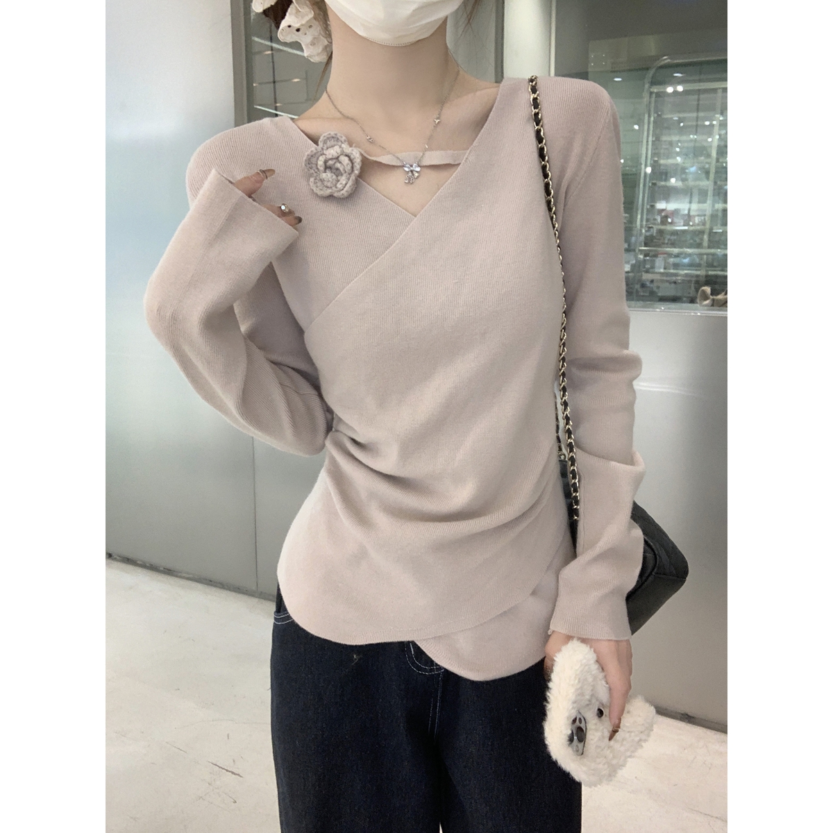 가을 겨울 v-neck 기질 달콤한 레이스 스 플라이 싱 앤디 벨벳 스웨터베이스 긴 소매 스웨터