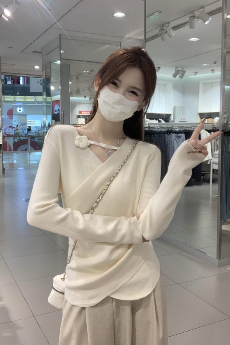 한국 스타일 느슨하고 다재다능한 후드 어류 뼈 디자인 여성을위한 순수한 면화 긴 소매 티셔츠 탑