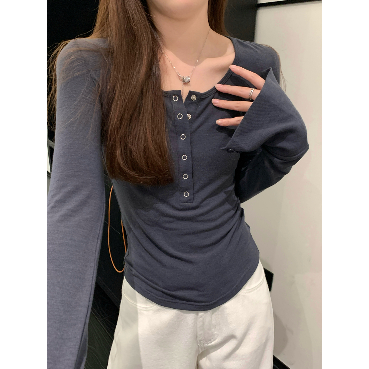 가을 겨울 한국 스타일 슬림 버튼 폴로 칼라 6 양모 스웨터 긴팔 기본 스웨터