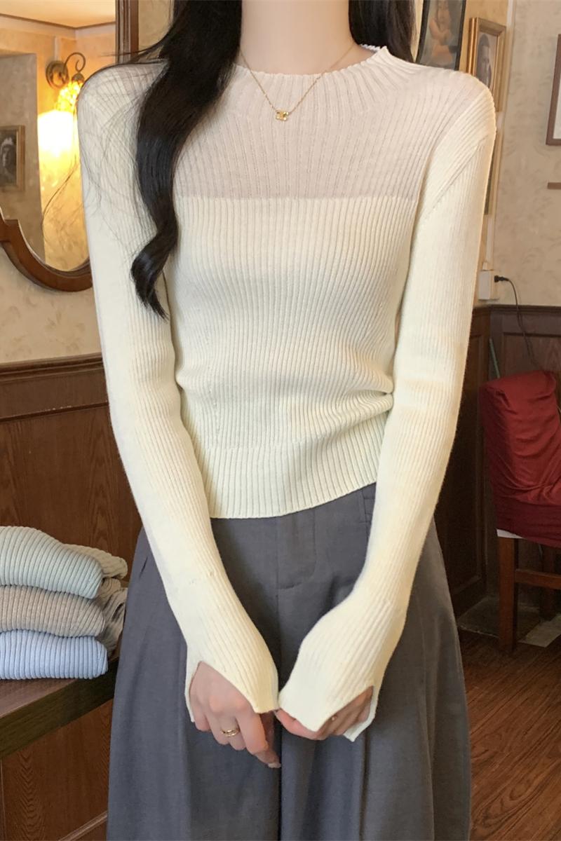 가을 겨울 한국 스타일 V- 넥 대비 컬러 바 스트립 자수 디자인 긴팔 내부 티셔츠 탑