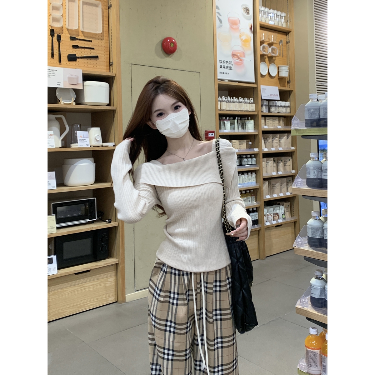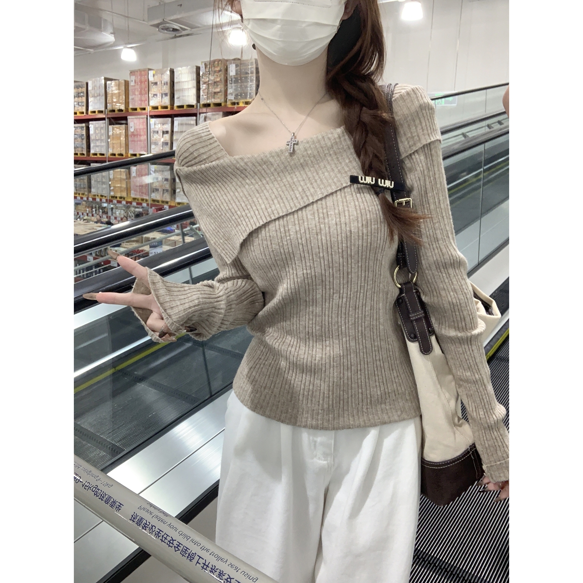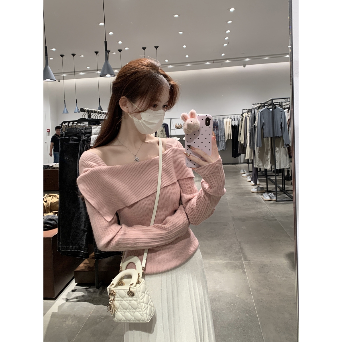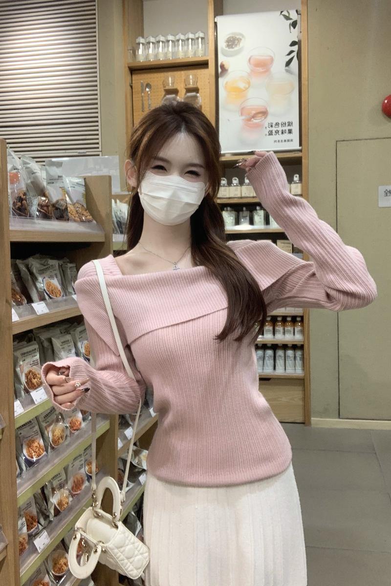 가을 겨울 한국 스타일 1 길이 목걸이 표범 인쇄 앤디 벨벳 스웨터베이스 스웨터 탑