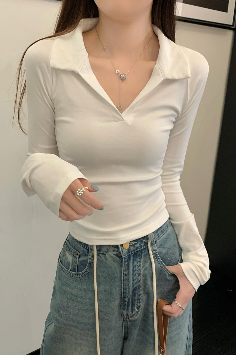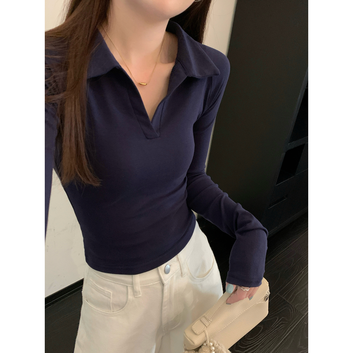 가을 겨울 한국 스타일 한 줄 흔들림 칼라 주름 슬리밍 6 양모 스웨터 긴팔베이스 스웨터