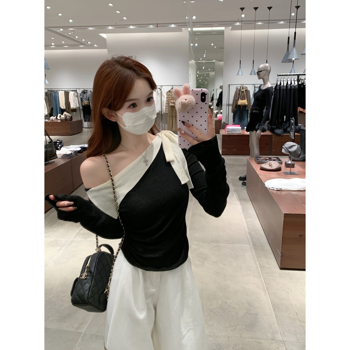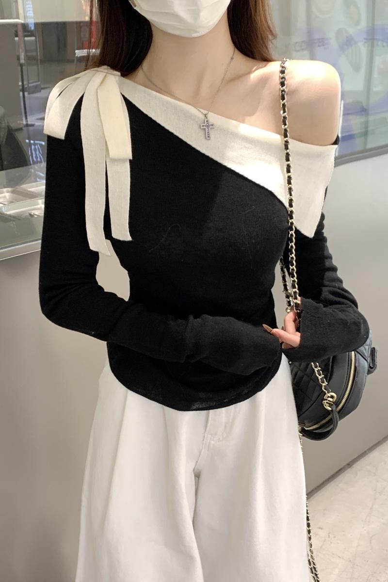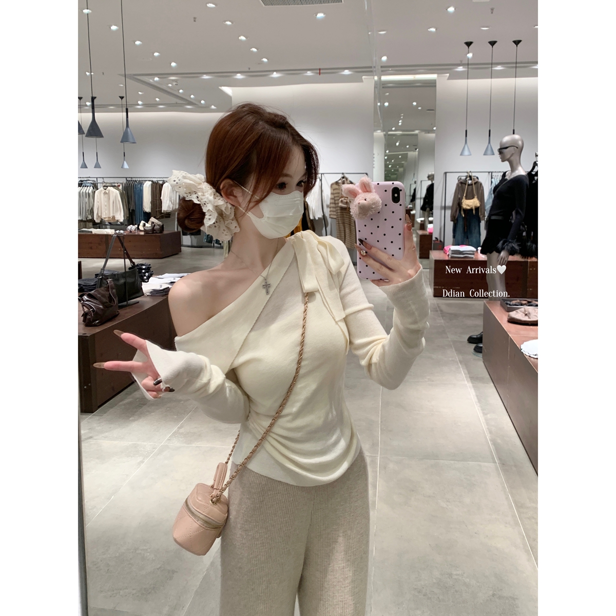 가을 겨울 한국 스타일 더블 레이어 V- 넥 버튼 디자인 6 양모 스웨터베이스 탑
