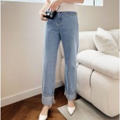 여성 와이드 롤업 데님 팬츠