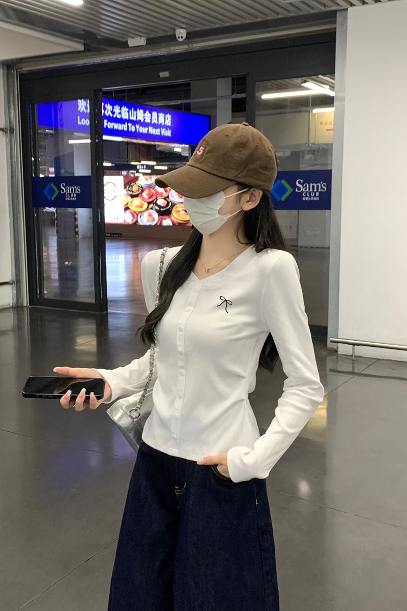 가을 겨울 v-neck 기질 슬림 슬릿 ft 슬리브 6 양모 니트 스웨터베이스 탑