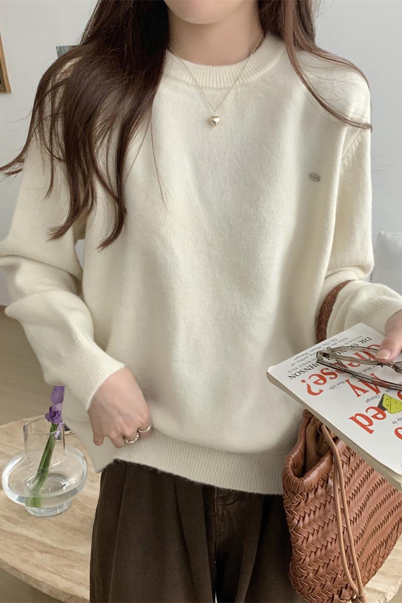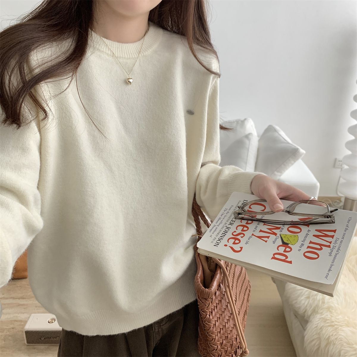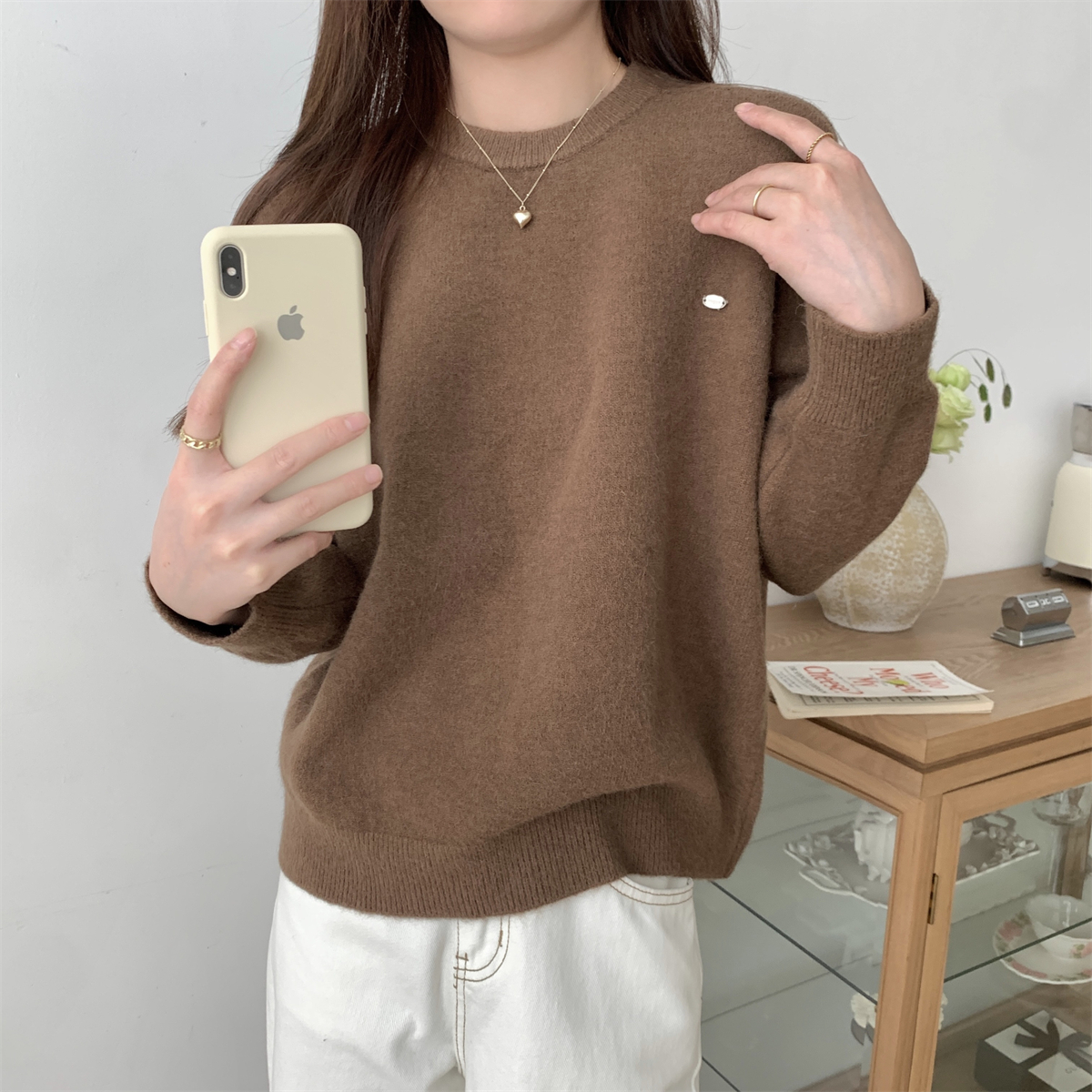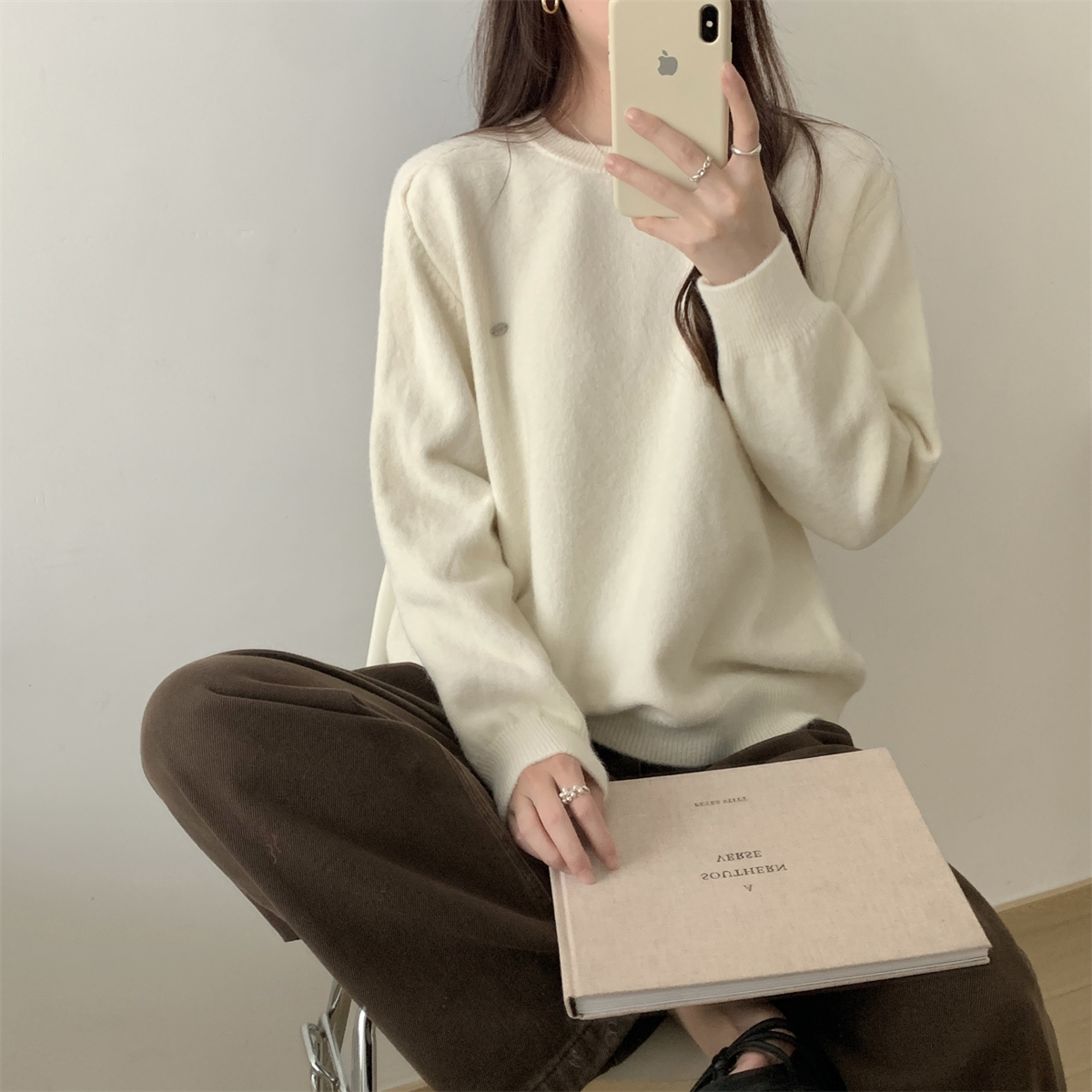 가을 겨울 라운드 넥 단순하고 다재다능한 앤디 벨벳 니트 스웨터베이스 셔츠 여성