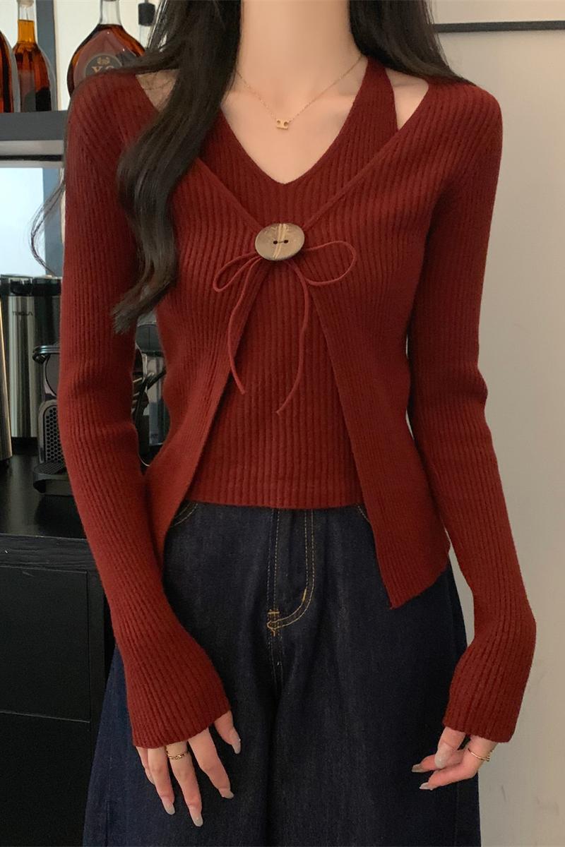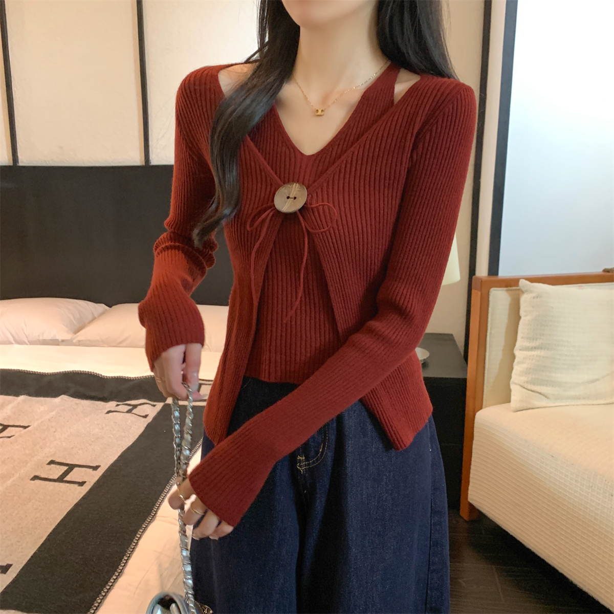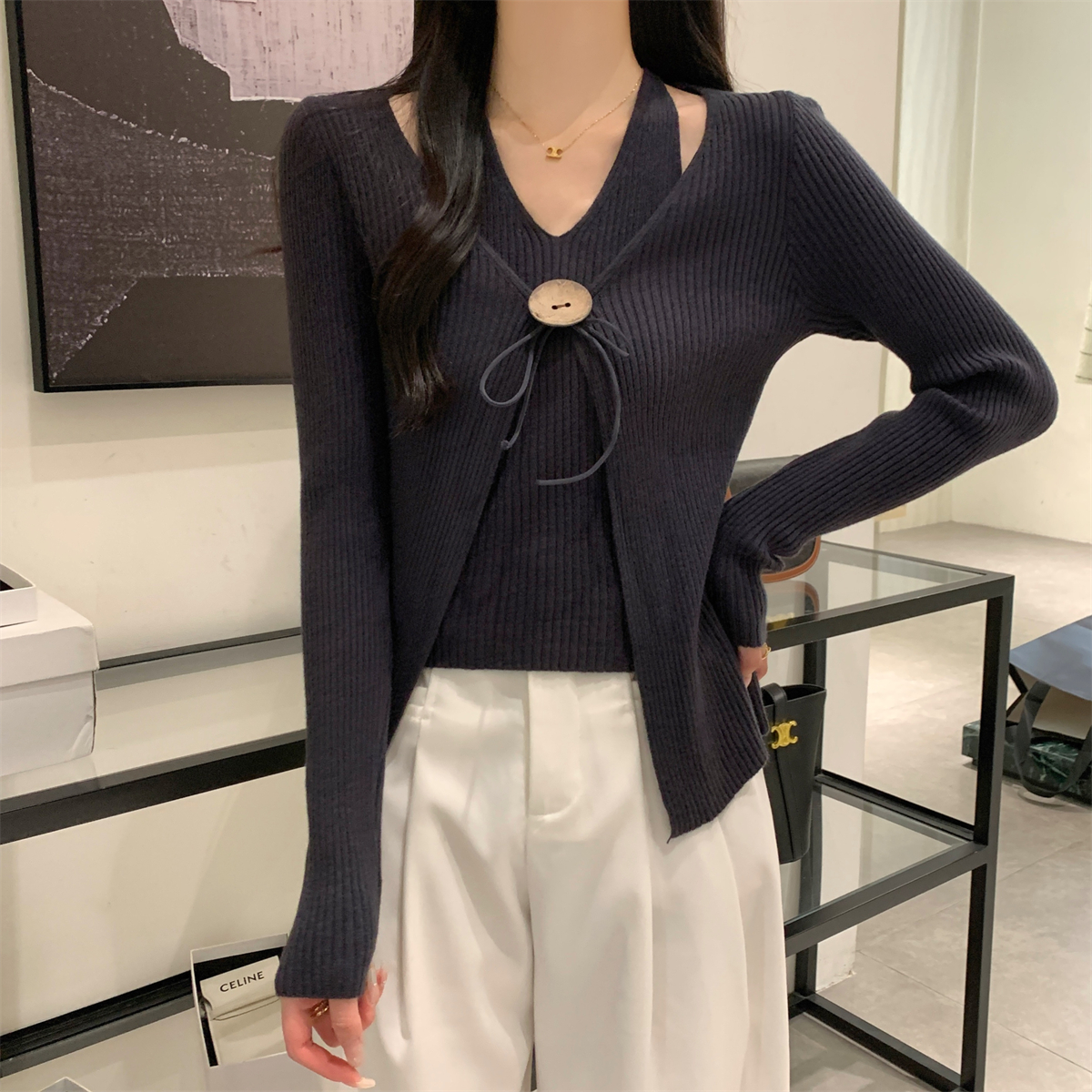 한국 스타일 스퀘어 칼라 디자인 슬림 벨벳 니트 스웨터베이스 탑