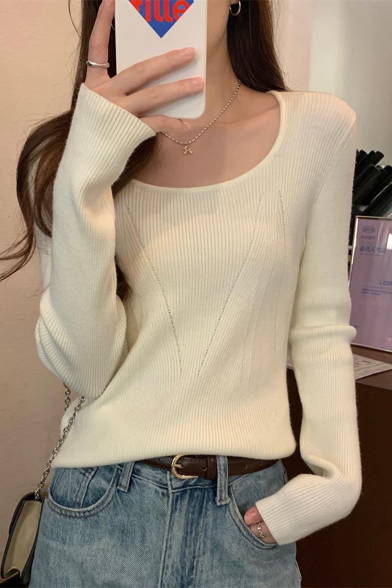 가을 겨울 한국 스타일 단순하고 다재다능한 6 개 니트 스웨터베이스 긴팔 탑
