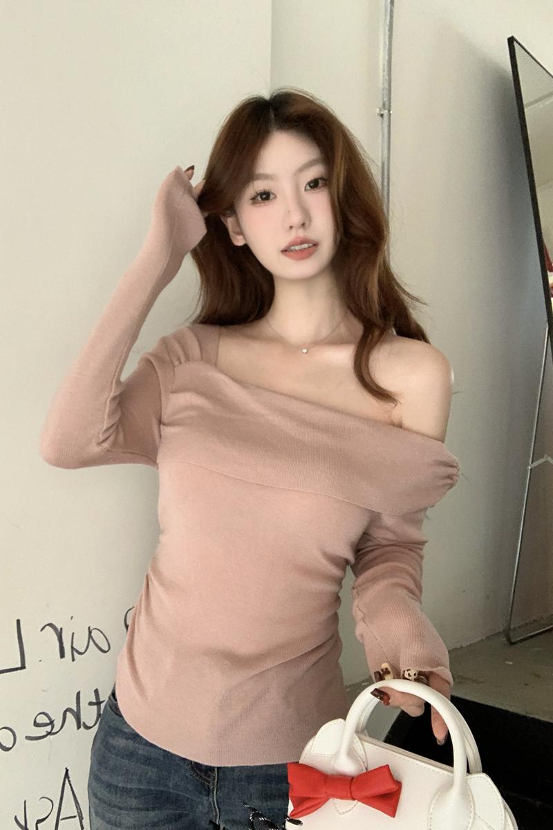 가을 겨울 V- 넥 레이스 스 플라이 싱 순수하고 불행한 기질 앤디 벨벳 스웨터베이스 탑