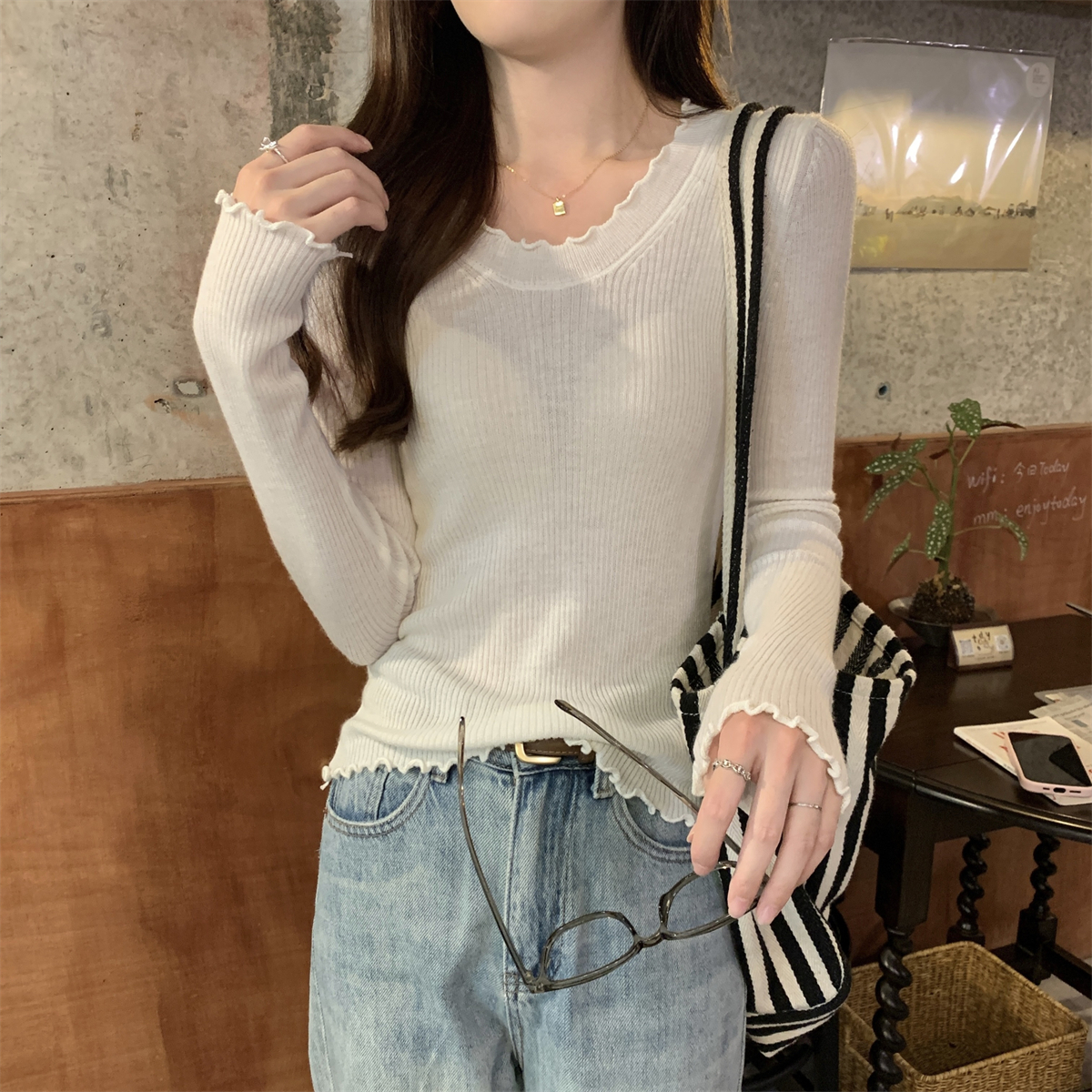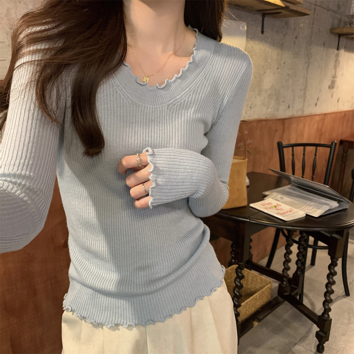 가을 겨울 한국 스타일 목걸이 슬림 기질 트위스트 디자인 앤디 벨벳 니트 스웨터 긴팔 탑