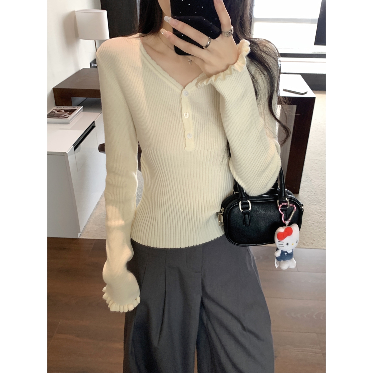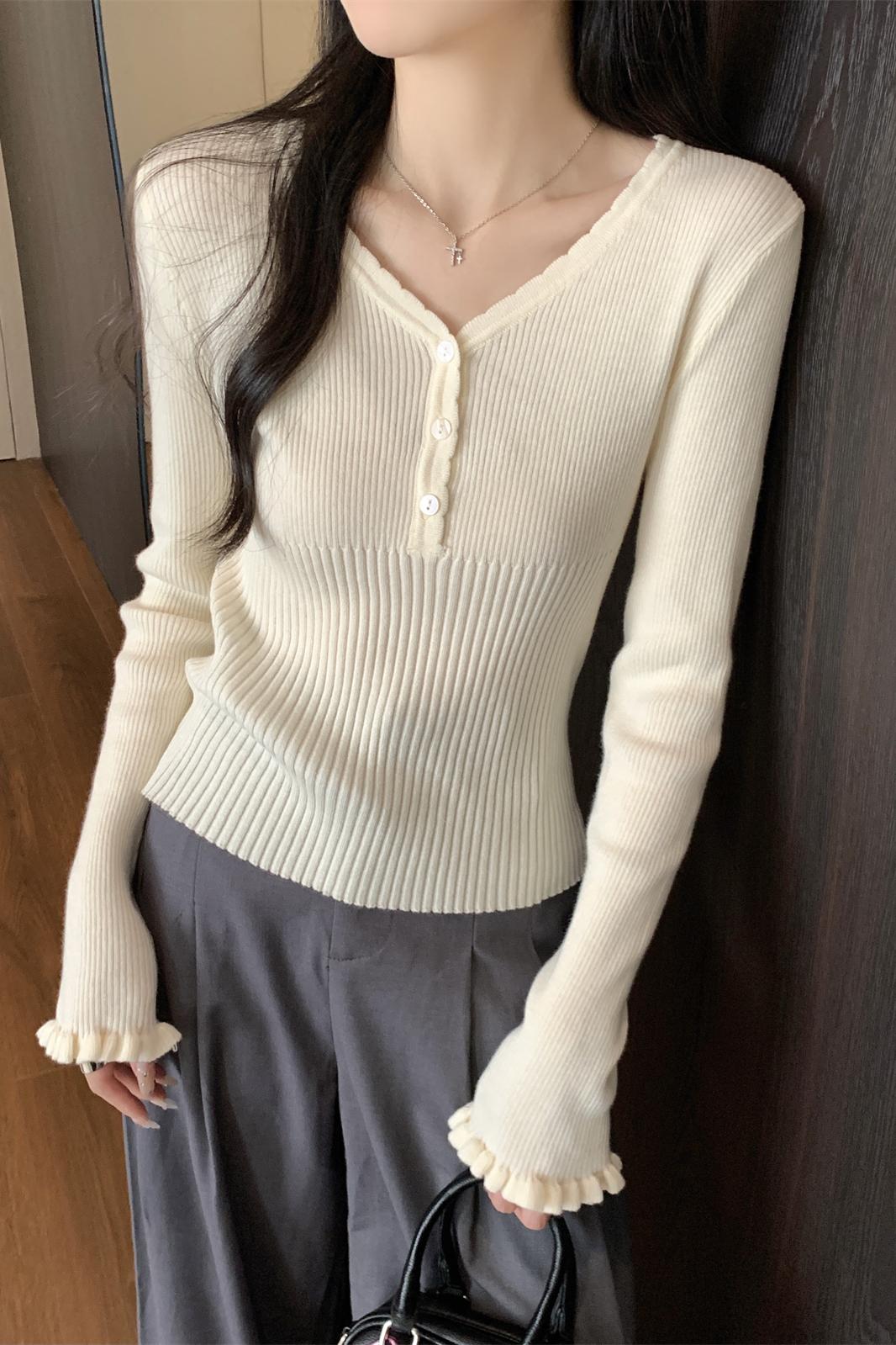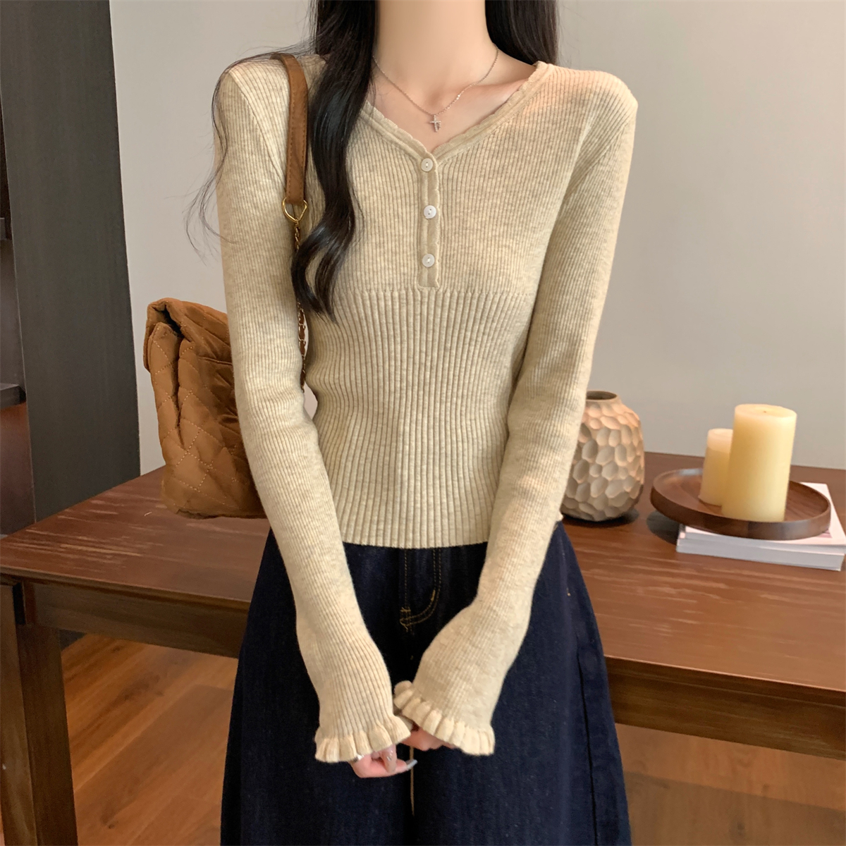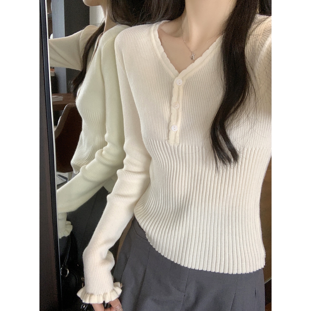 가을 겨울 라운드 넥 버튼 간단한 부드러운 글루 틴 6 양모 니트 스웨터베이스 셔츠 탑