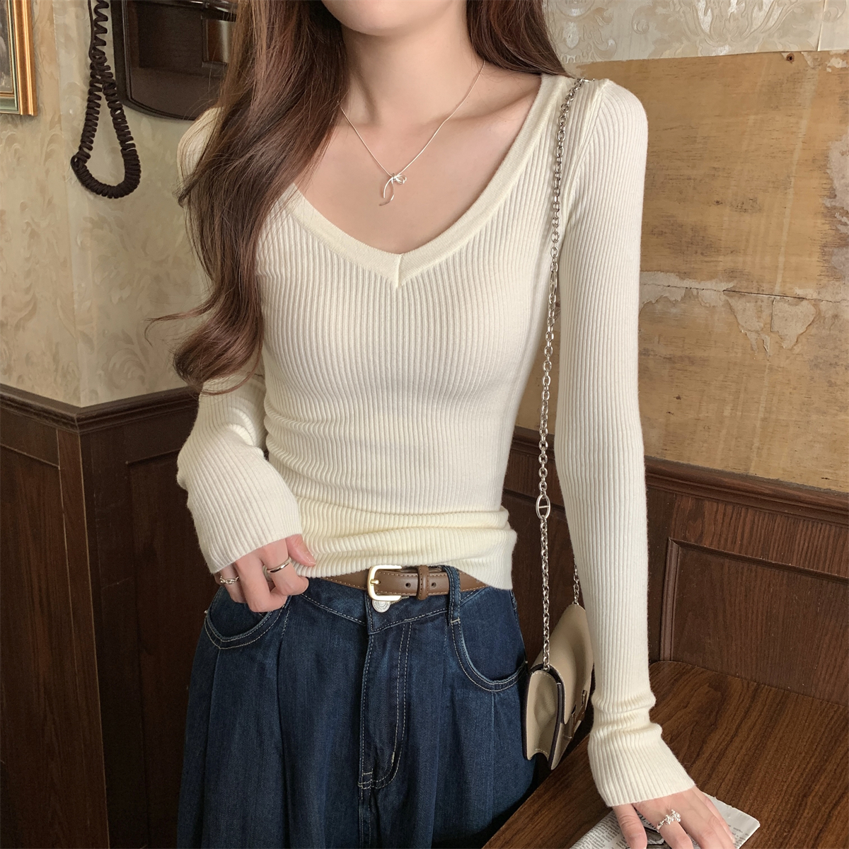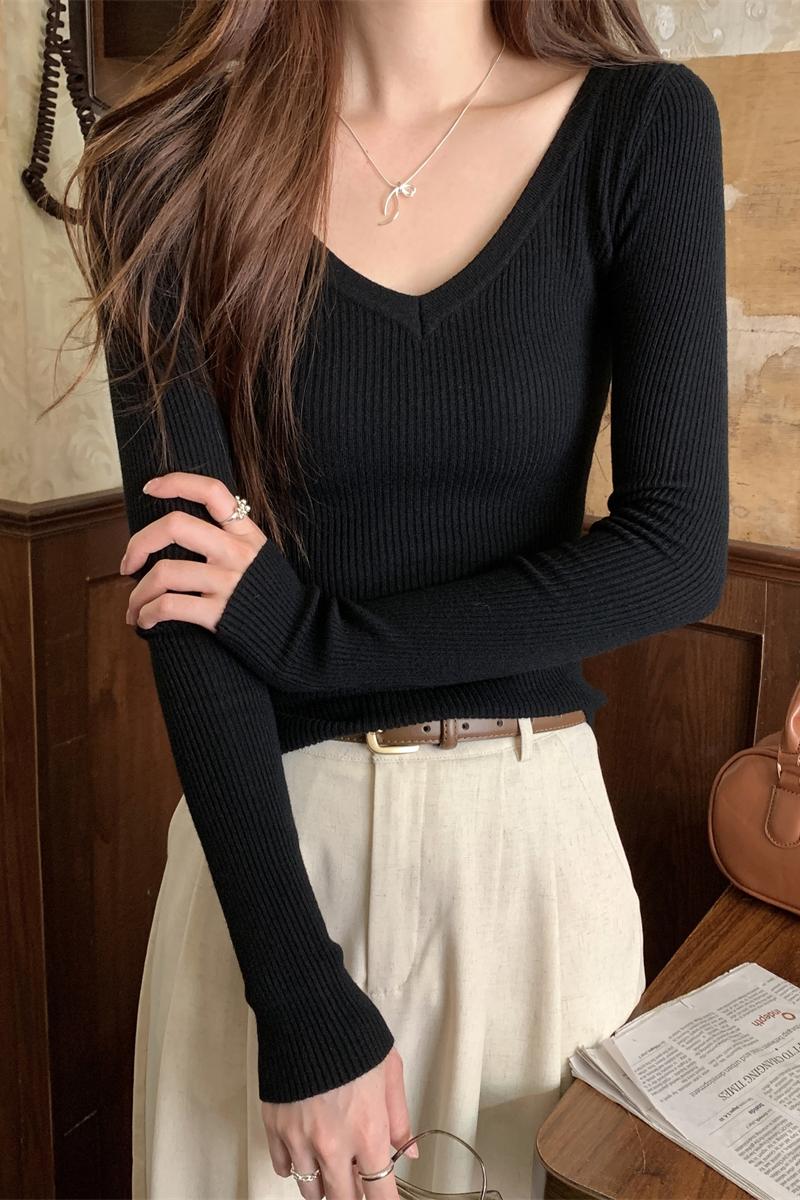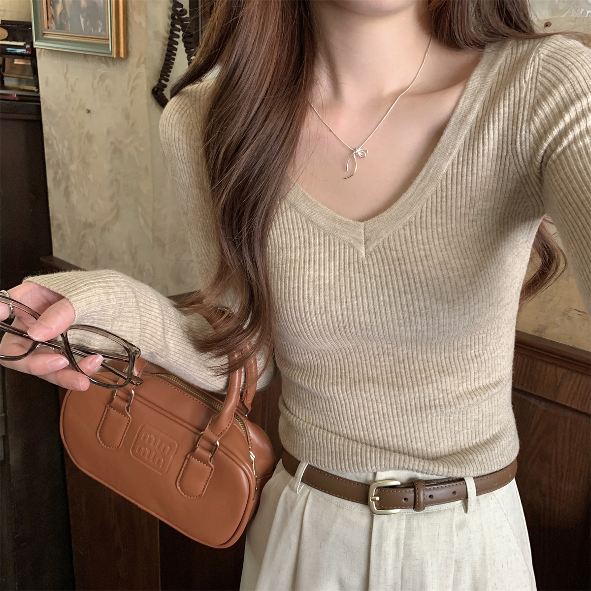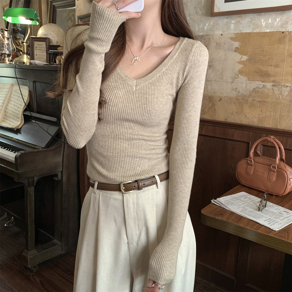 가을 겨울 V- 넥 느슨한 15 색 기본 앤디 벨벳 긴팔 니트베이스 셔츠 탑