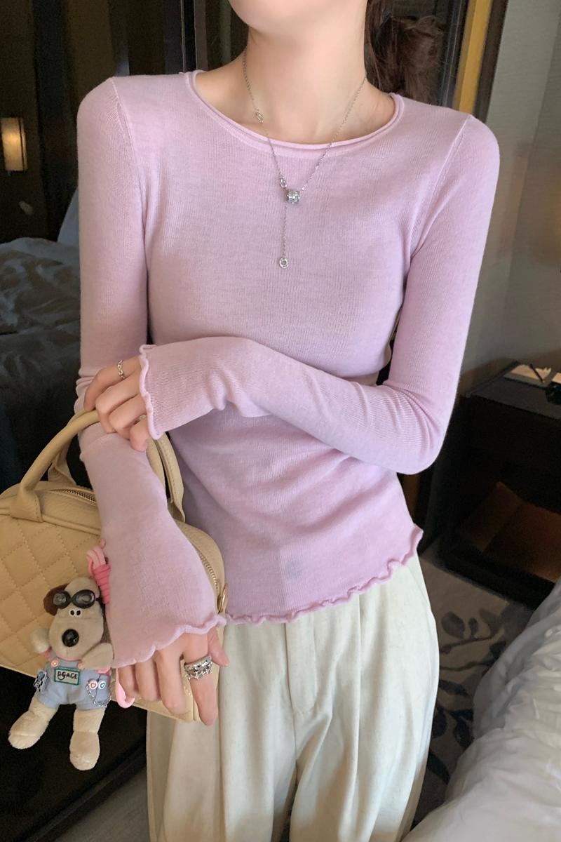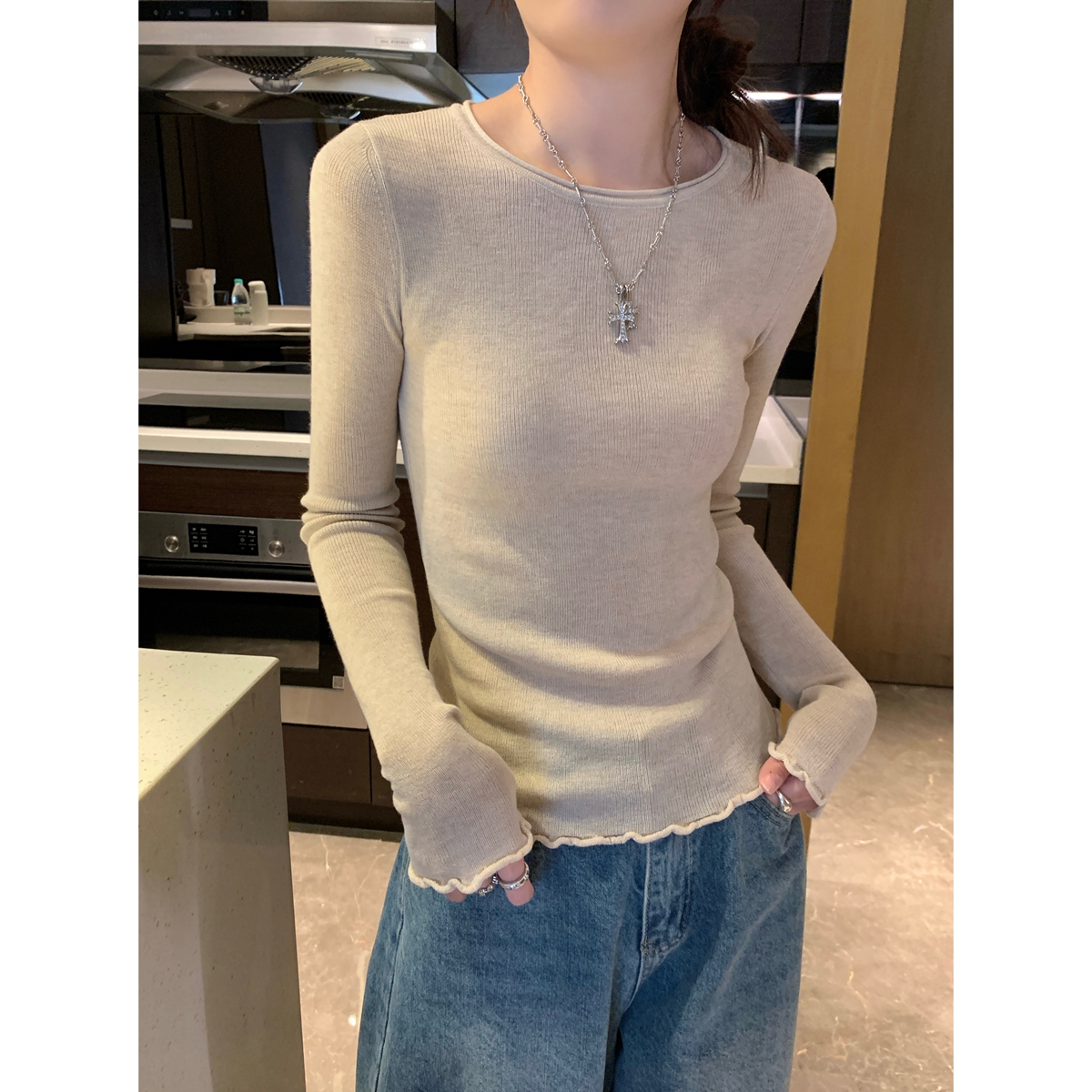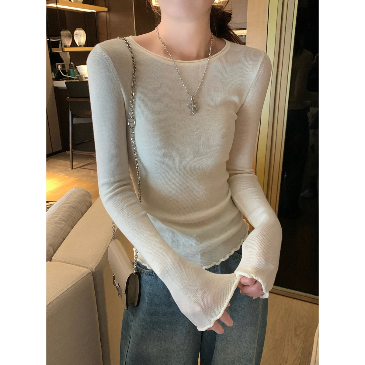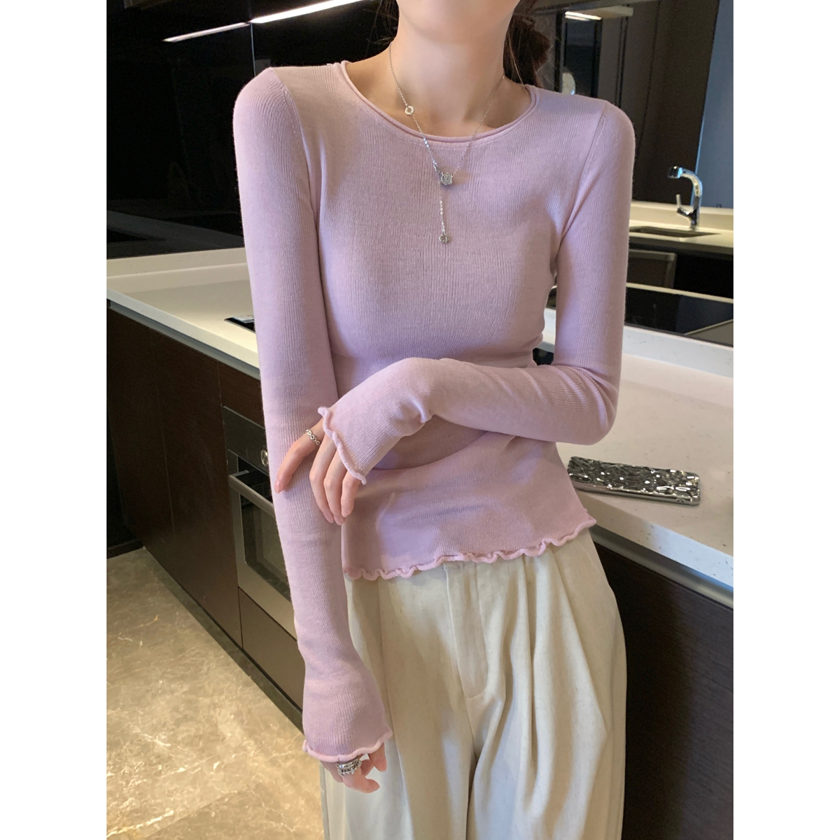 주사 가을 겨울 슬림 레이스 스 플라이 싱 된 나무 귀는 여성을위한 양모 니트 스웨터베이스 셔츠 탑