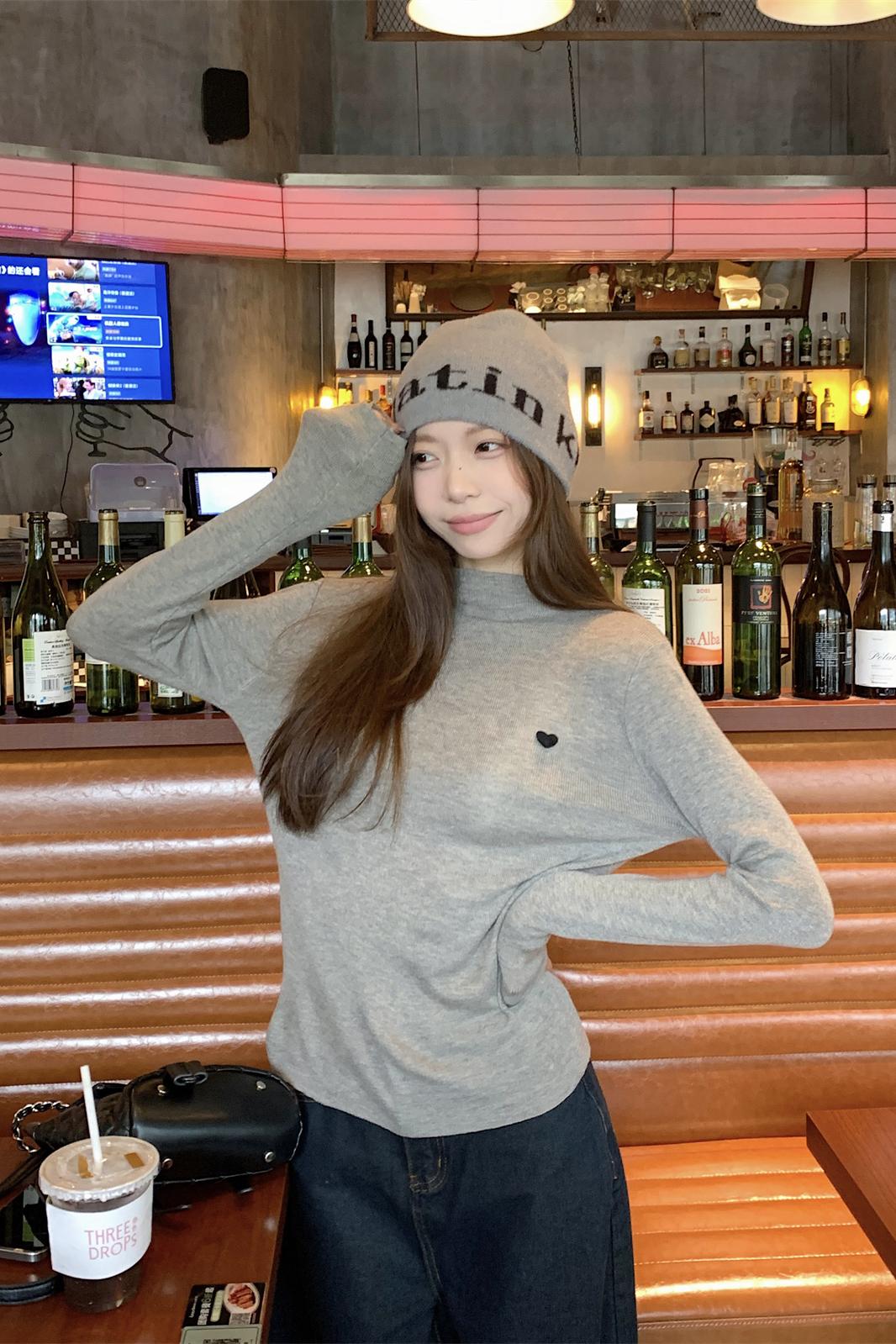 한국 스타일 스퀘어 목걸이 스타일 트위스트 디자인 슬리밍 앤디 벨벳 니트 스웨터 롱-슬리브 탑