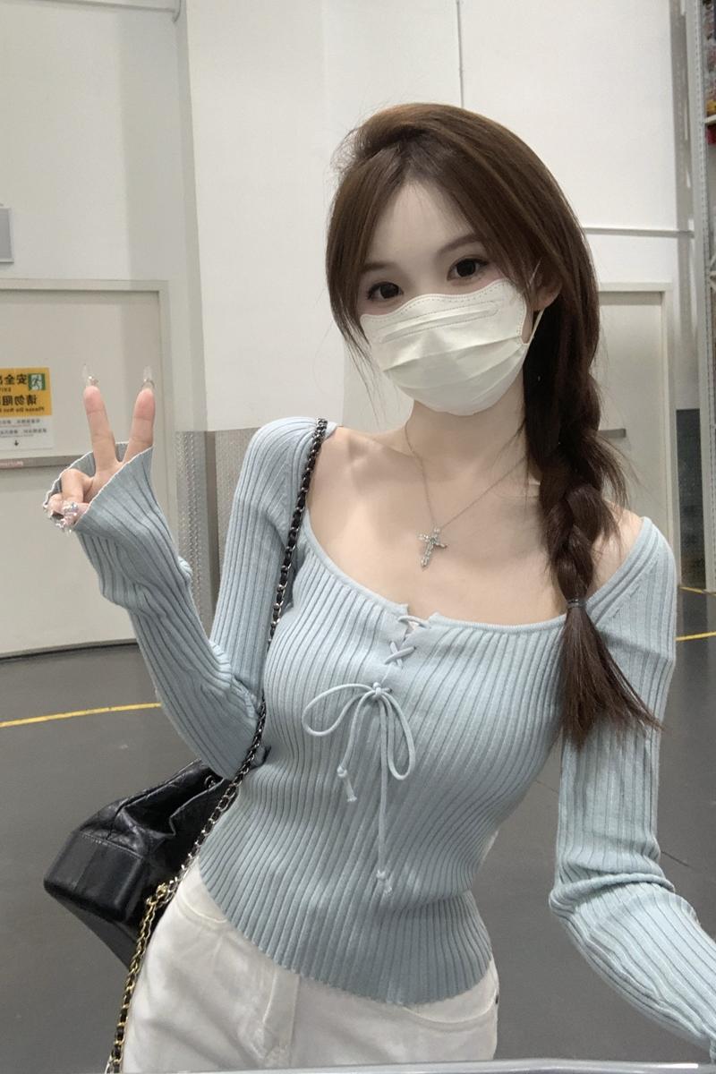 단순한 V- 넥 스킨 친화적 인 Laiser Tennis Versatile Base T-Shirt Top 함께하는 가을 겨울