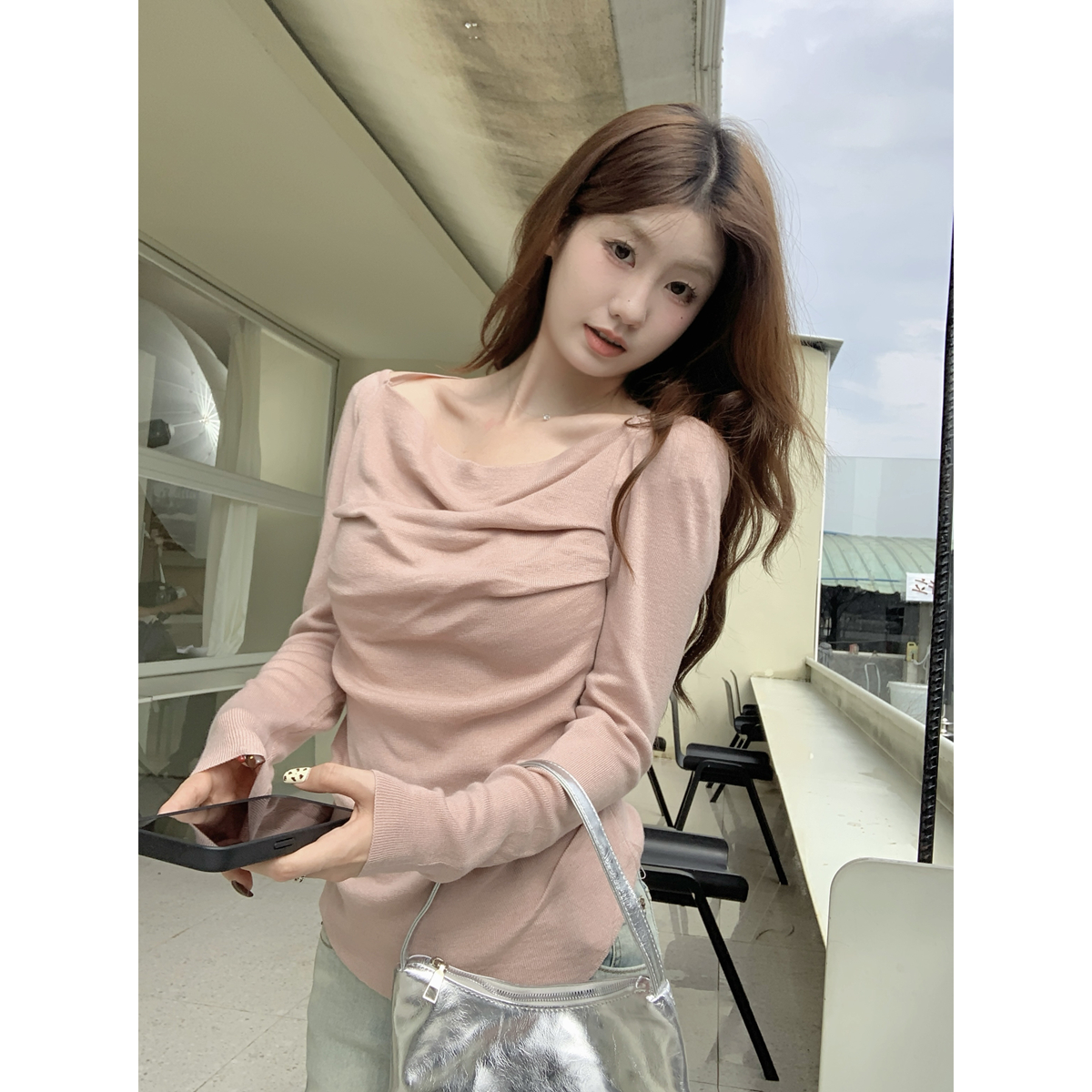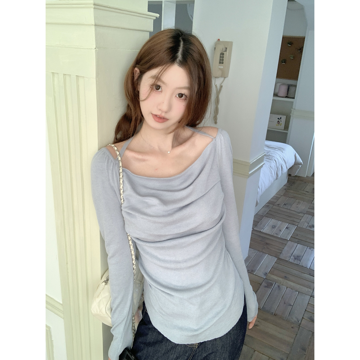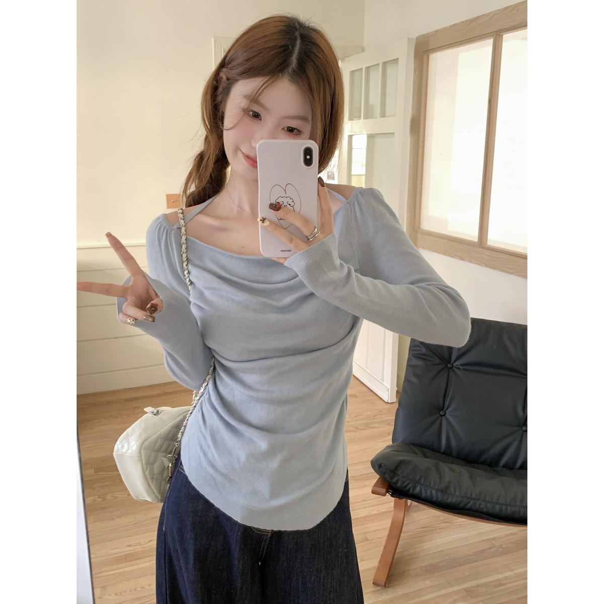 가을 겨울 버전 슬림 컬러 대비 컬러 라운드 목 물고기 뼈 기질 슬림 안쪽 긴팔 티셔츠 탑