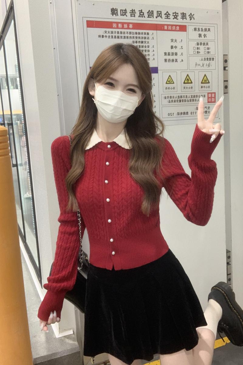 가을 겨울 폴로 목 기질 버튼 뼈 디자인 6 양모 니트베이스 스웨터 탑
