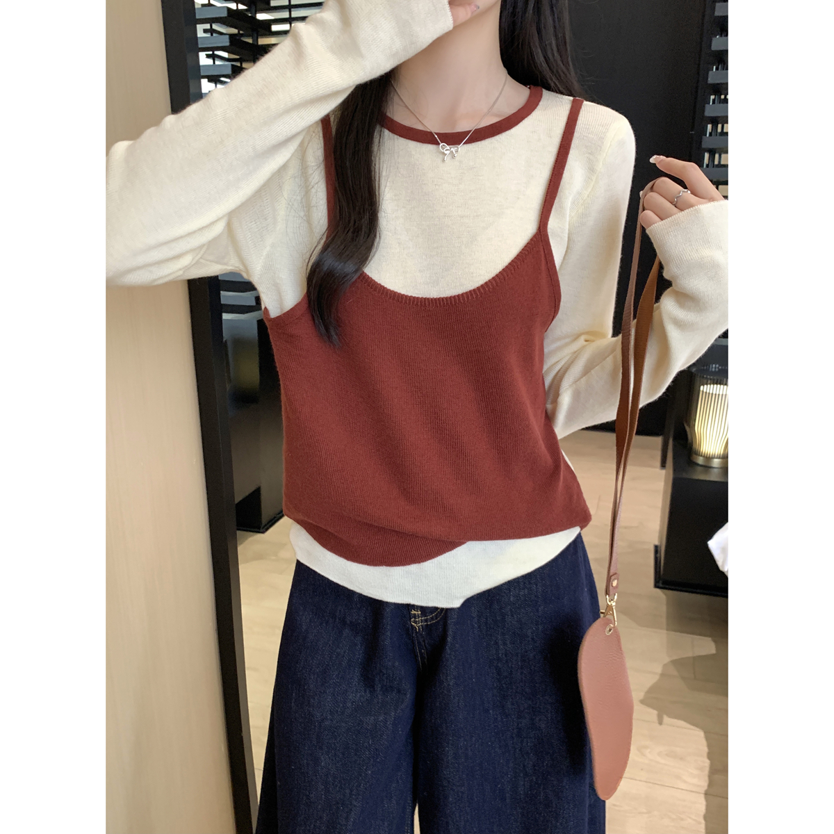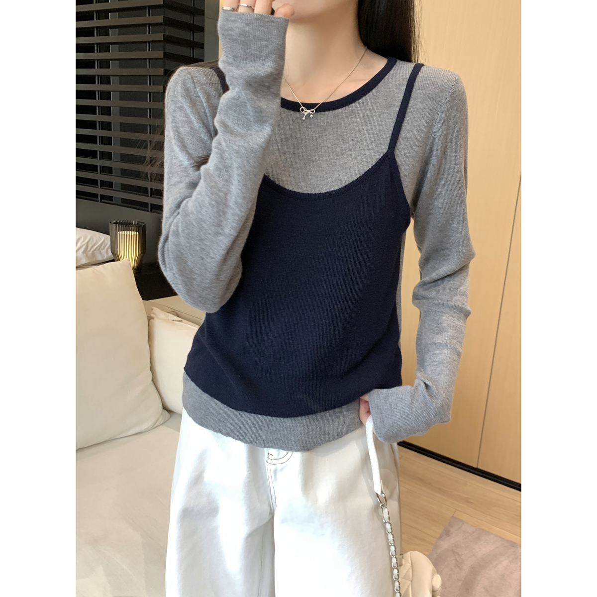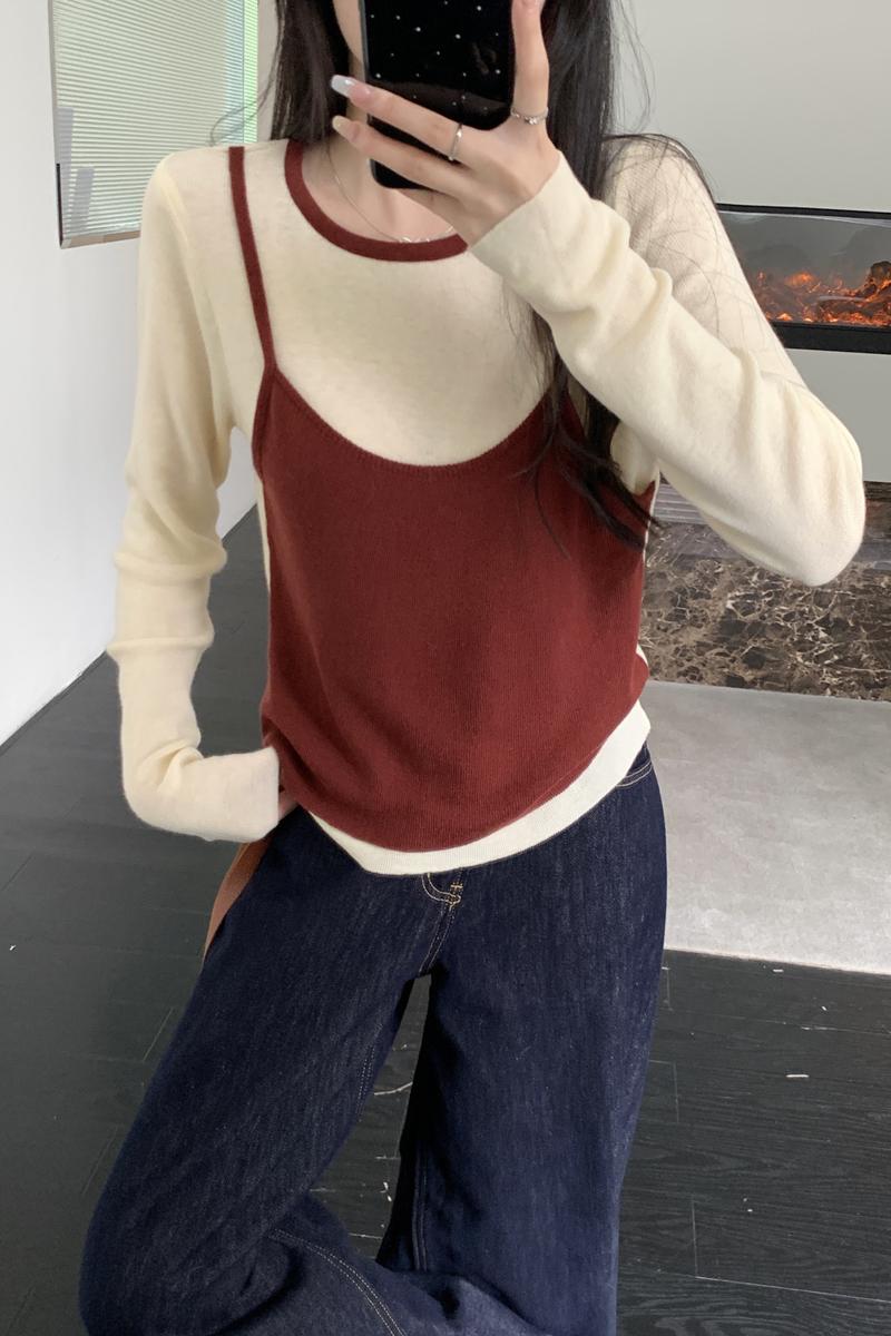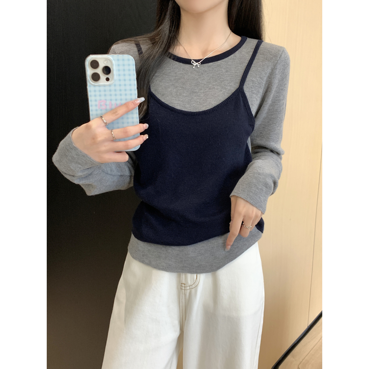 가을 겨울 V- 넥 기질 불규칙 버튼 디자인 2 피스 긴팔 티셔츠 속옷 탑