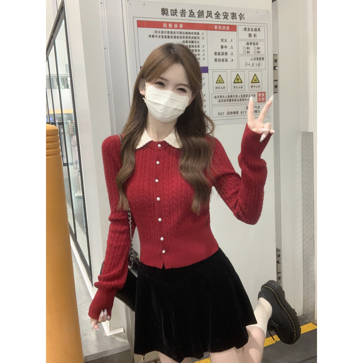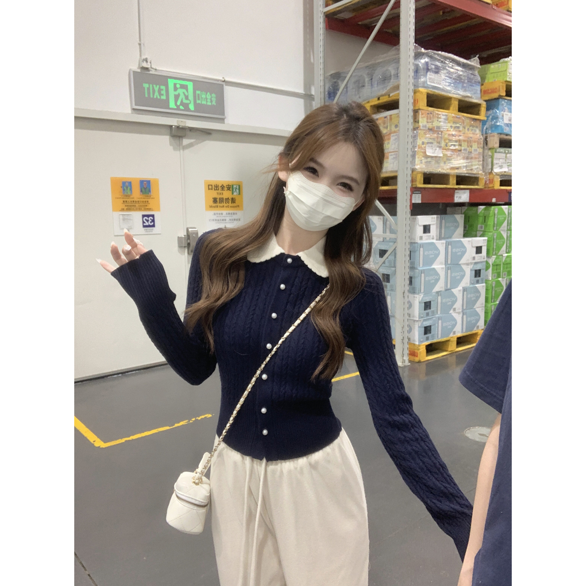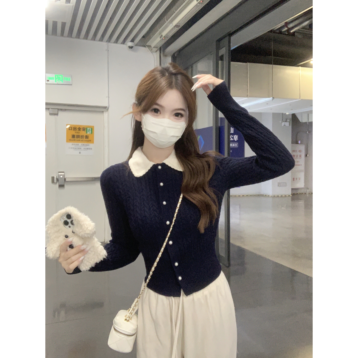 가을 겨울 스타일 슬림 기질 U-Neck 주름 디자인 앞 어깨 긴 소매 티셔츠 탑