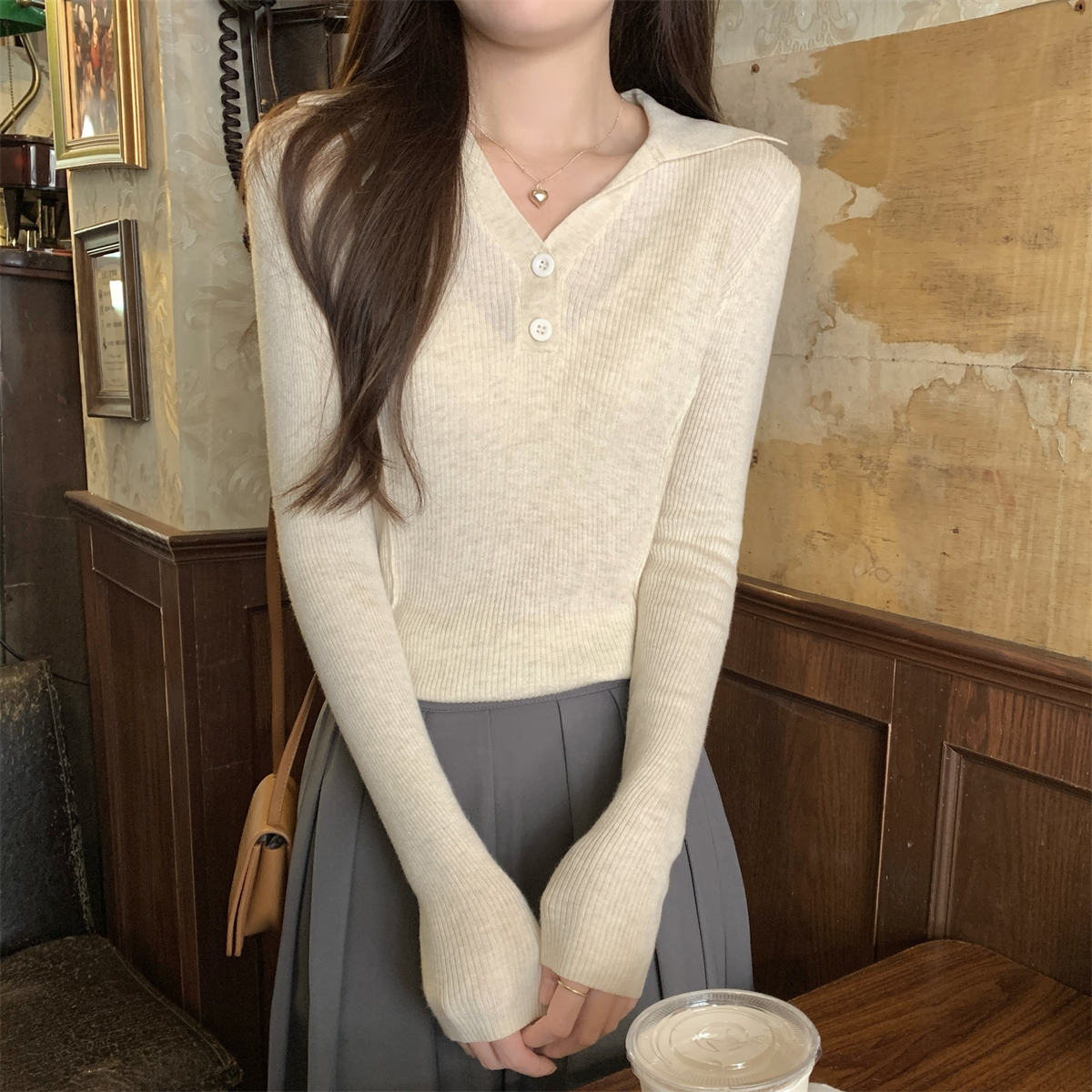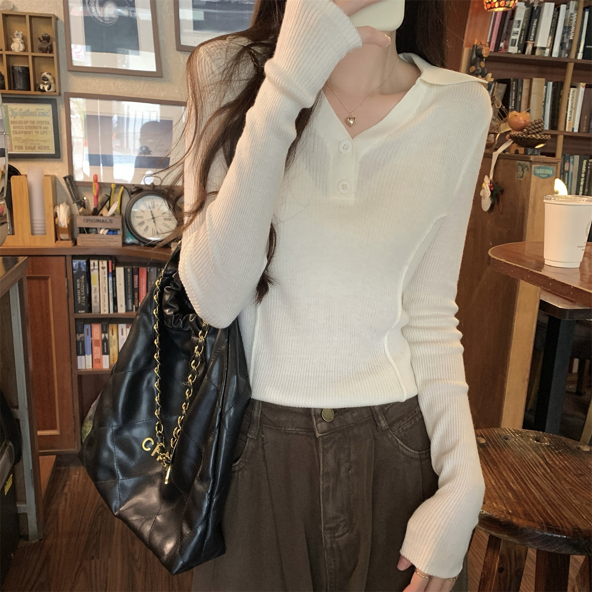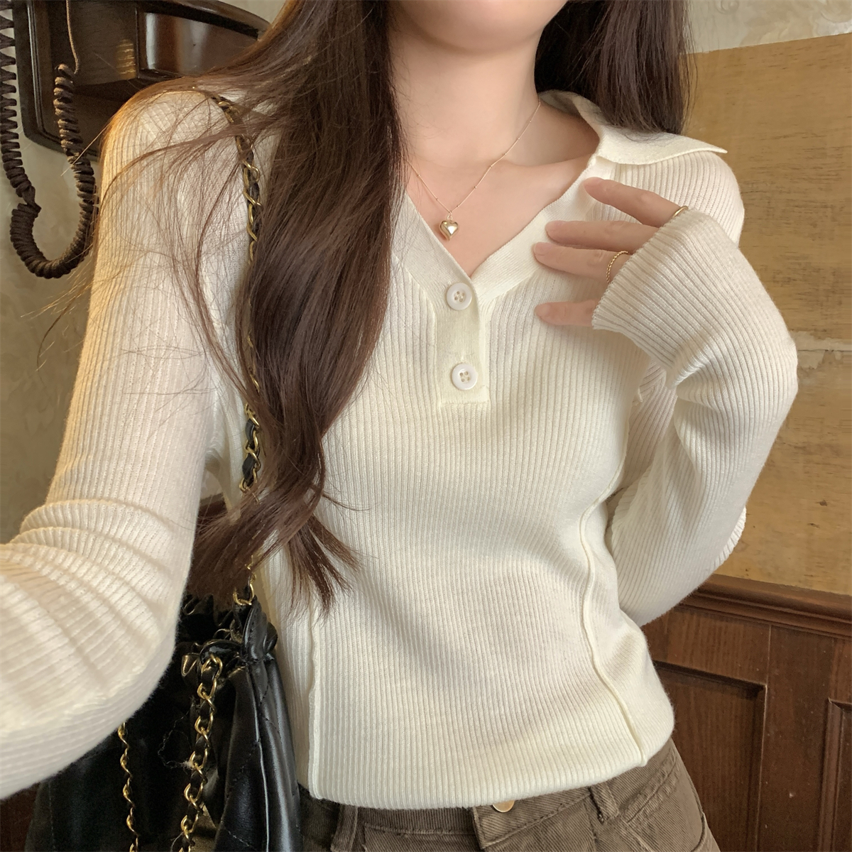 가을 겨울 한국 스타일 V- 넥 피부 친화적 인 Laiser Tennis Versatile Long-Sleeved Base T-Shirt Top