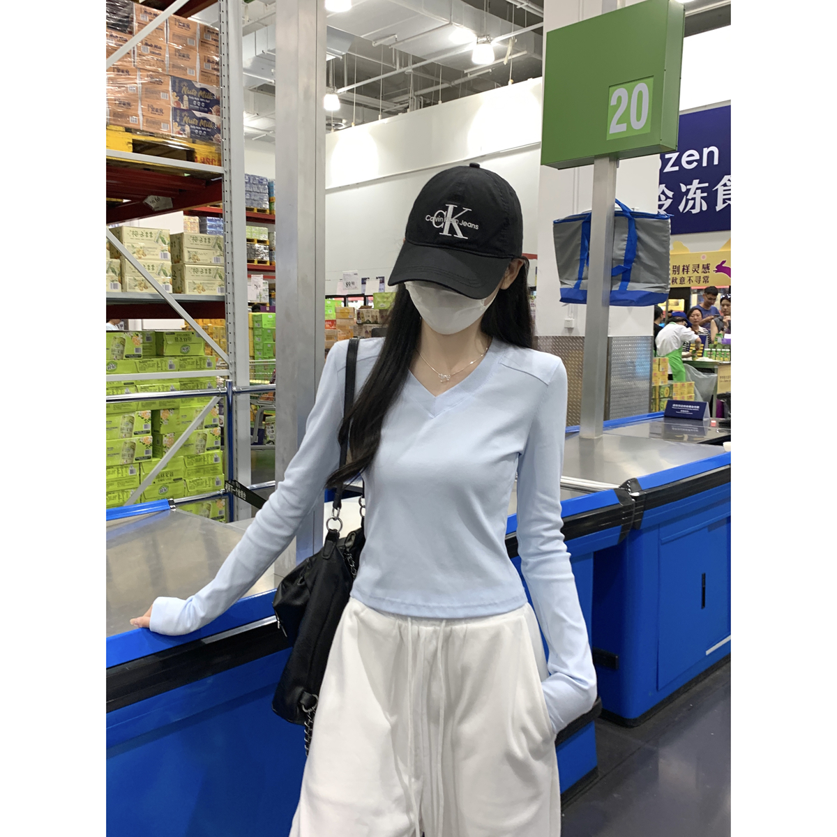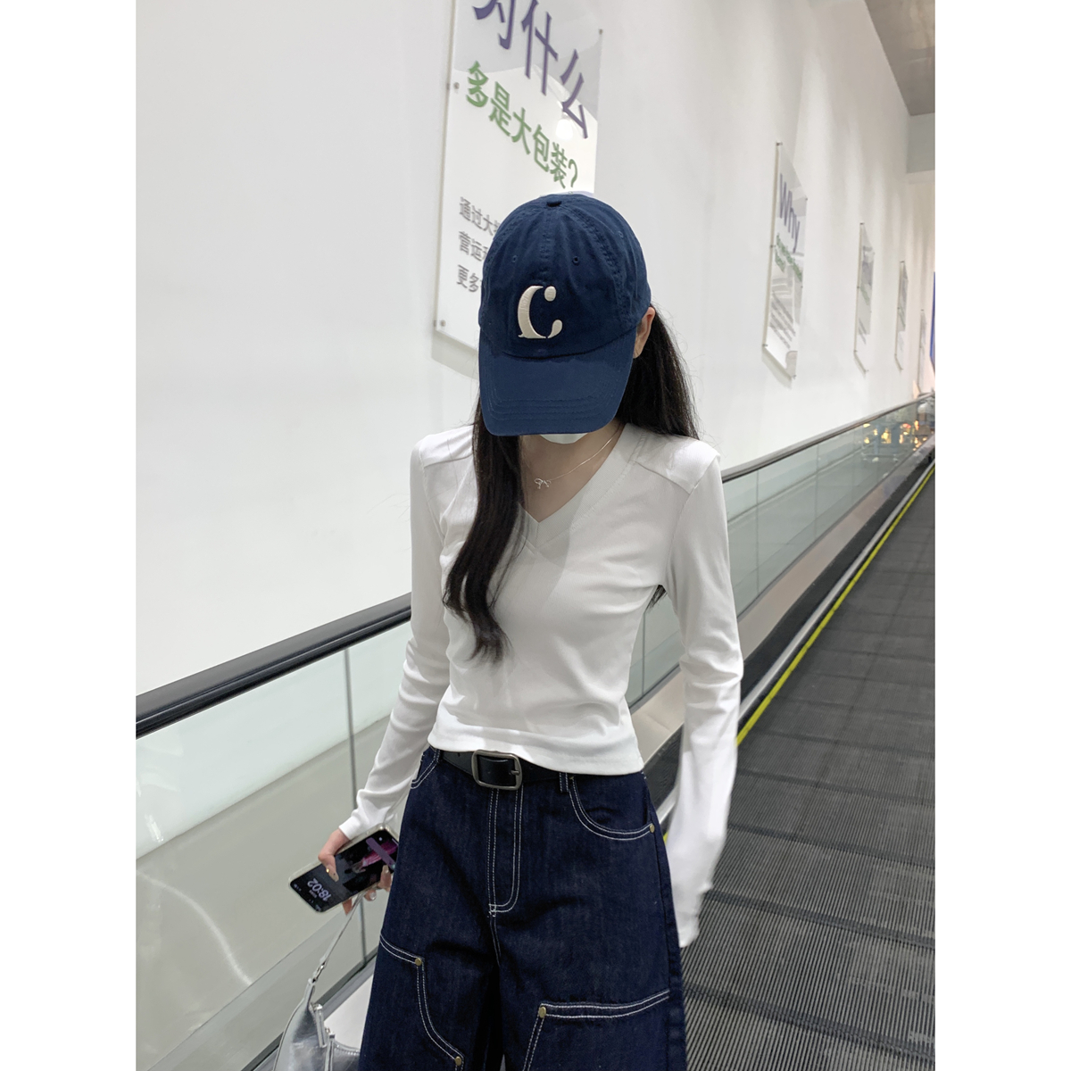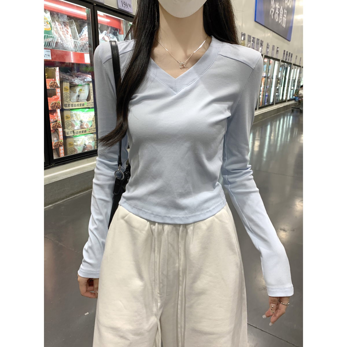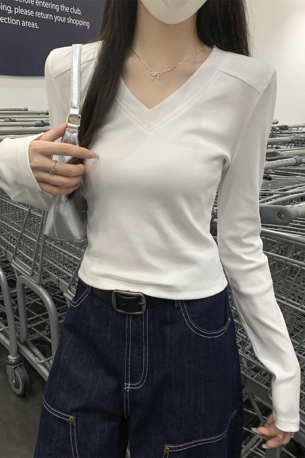 가을 겨울 스타일 슬림 기질 V- 넥 구덩이 스트립을 내려다 보도록 니트 니트베이스 스웨터 긴팔 탑