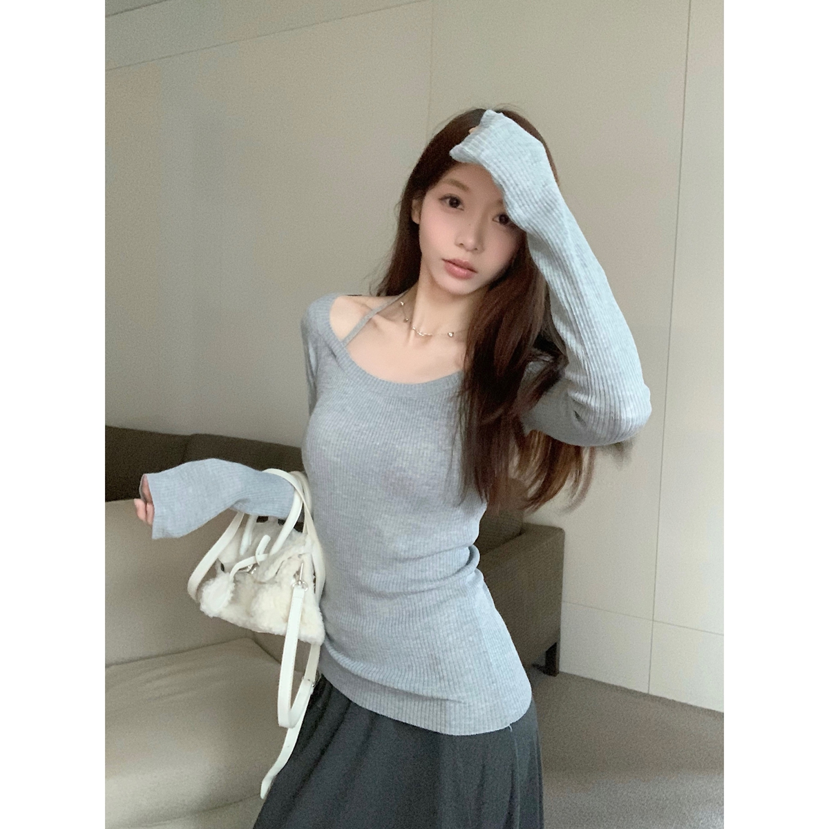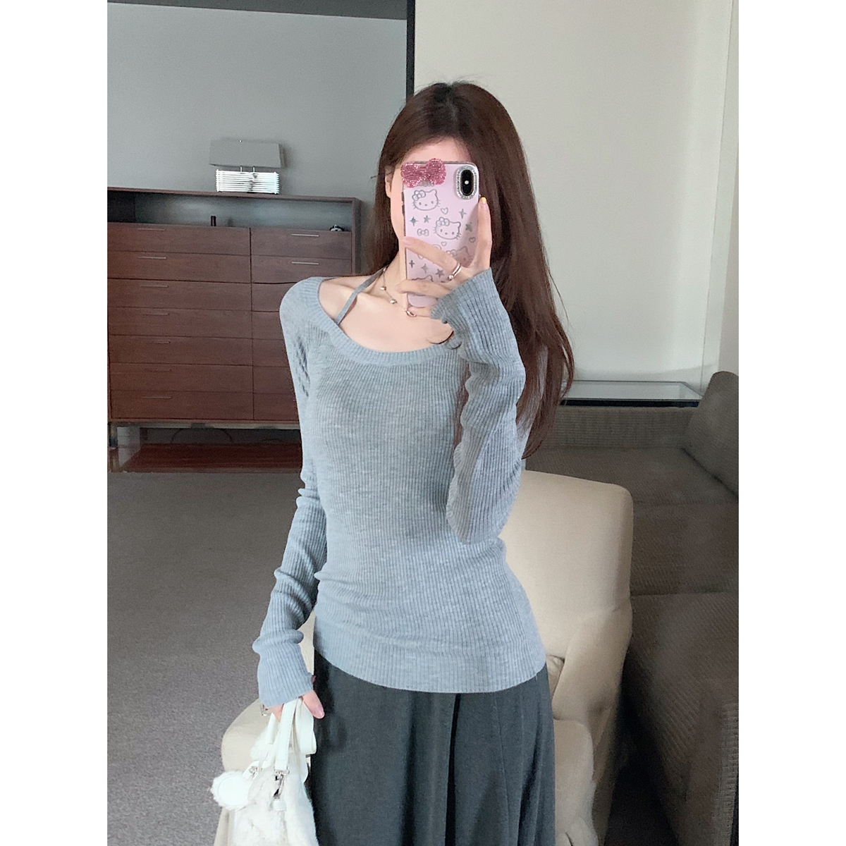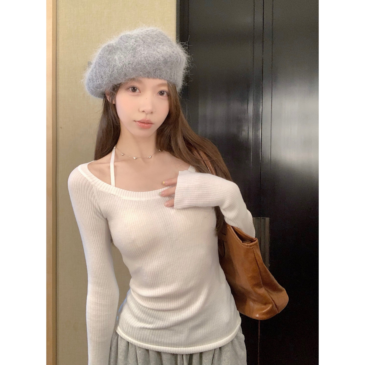 가을 겨울 대조 컬러 라운드 넥 스트라이프 6 양모 긴팔 니트 스웨터베이스 셔츠 탑