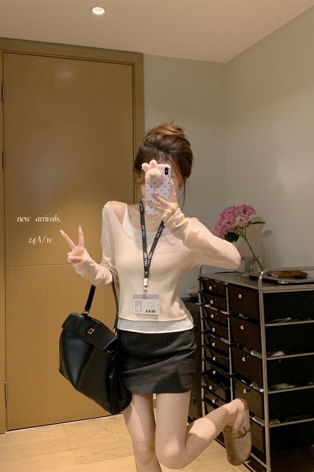 가을 가을 겨울 한국 슬림 V-Neck 대비 컬러 바 스트립 긴 소매베이스 티셔츠 탑