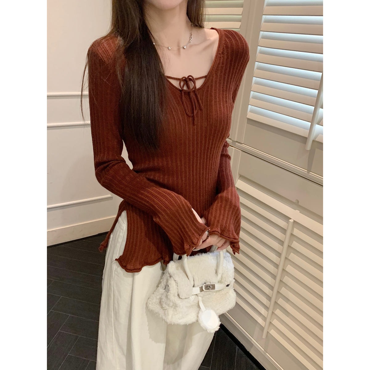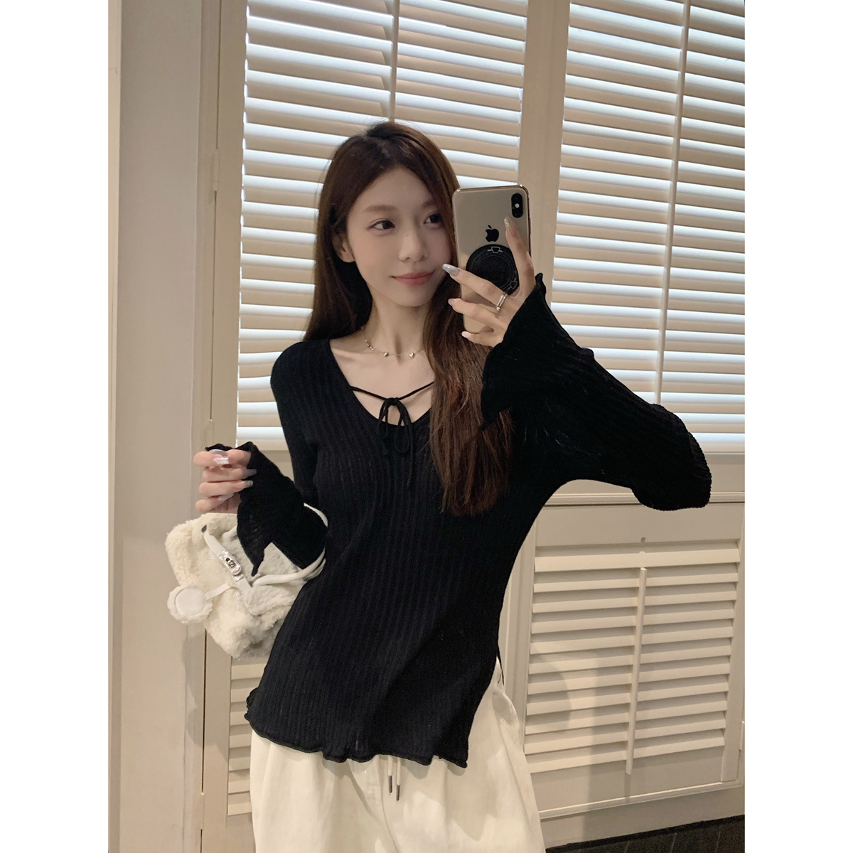 가을 겨울 슬림 v- 넥 골드 버튼 기질 6 양모 니트 스웨터베이스 셔츠 탑