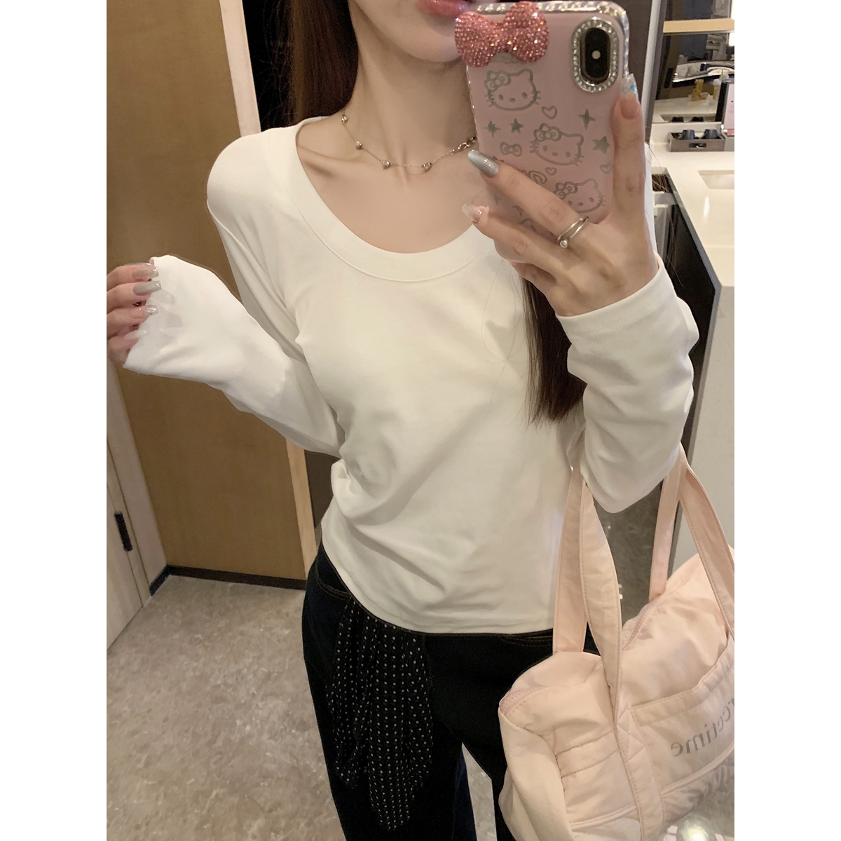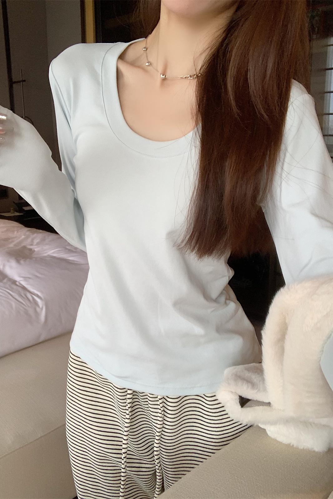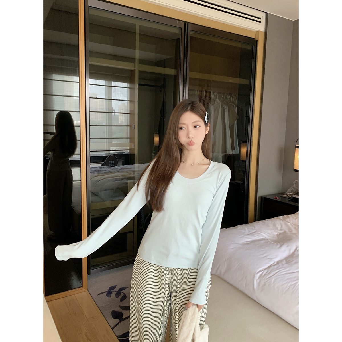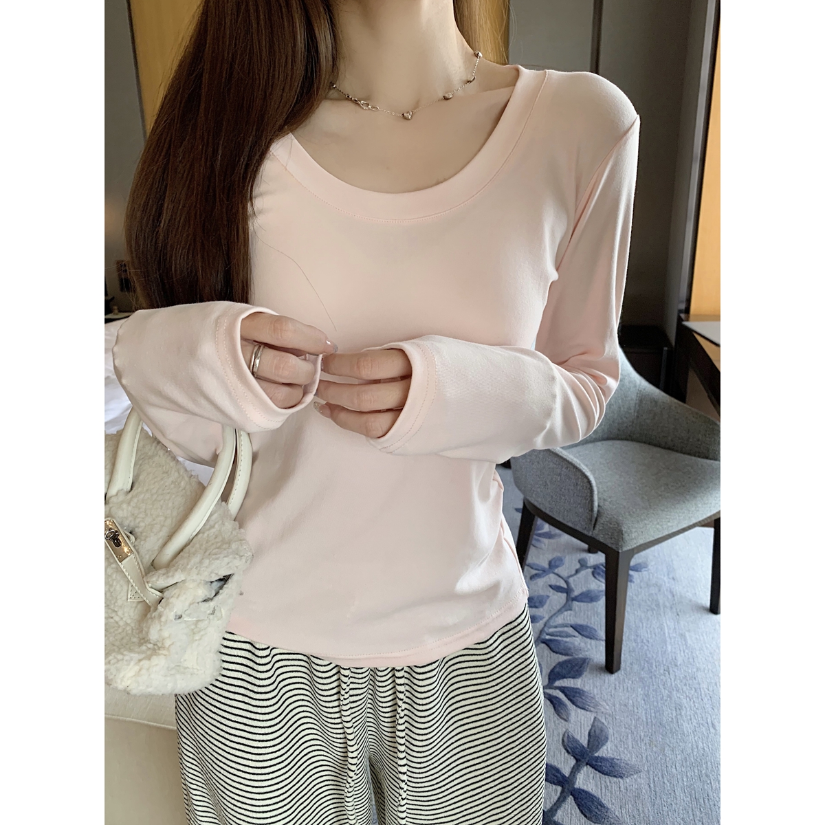 가을 겨울 한국 스타일 1 길이 소매 긴 소매베이스 티셔츠 탑