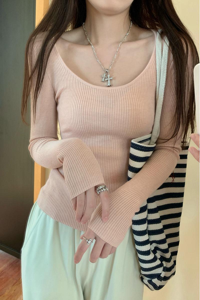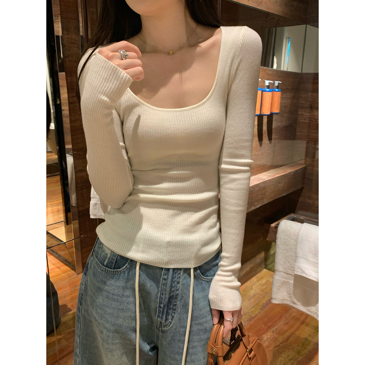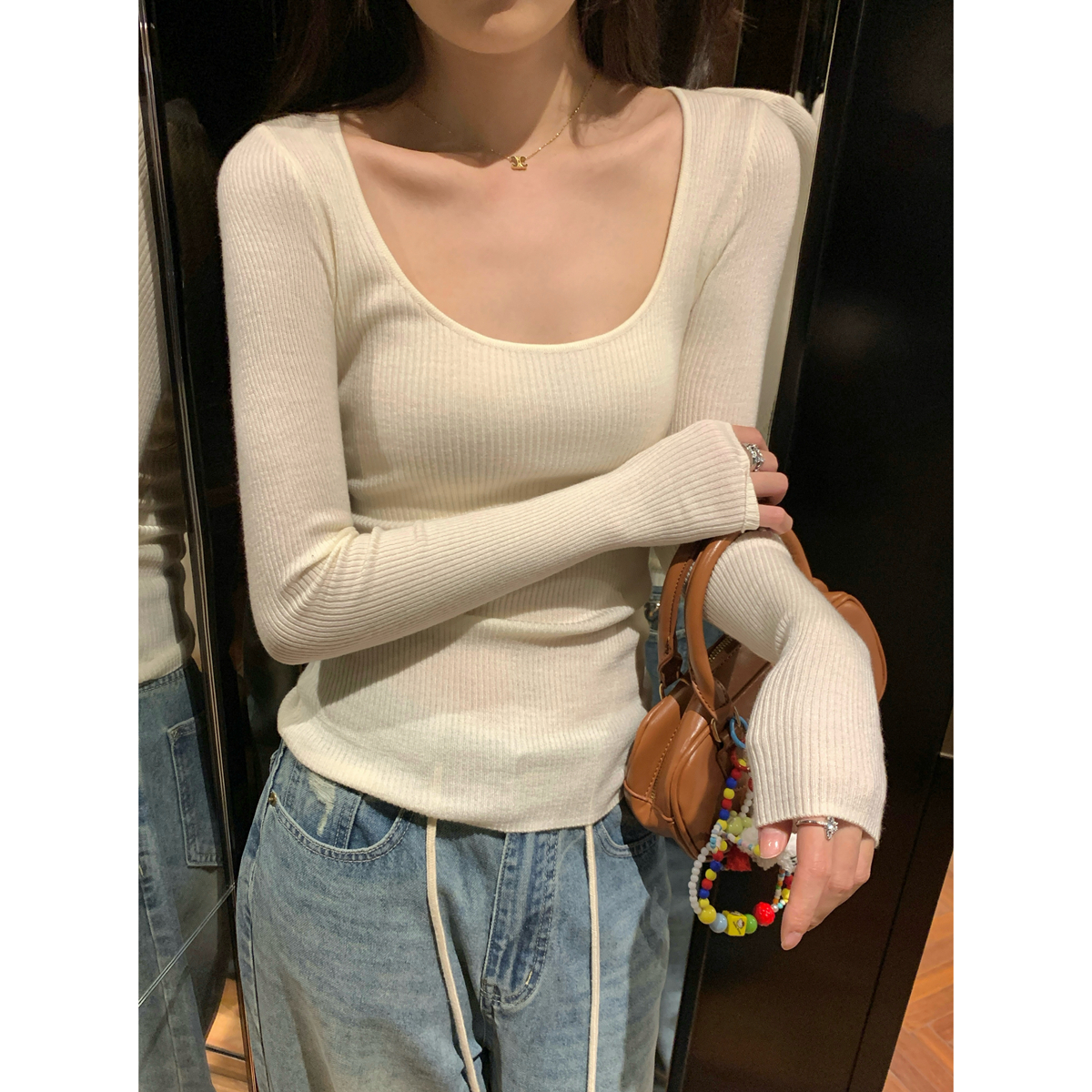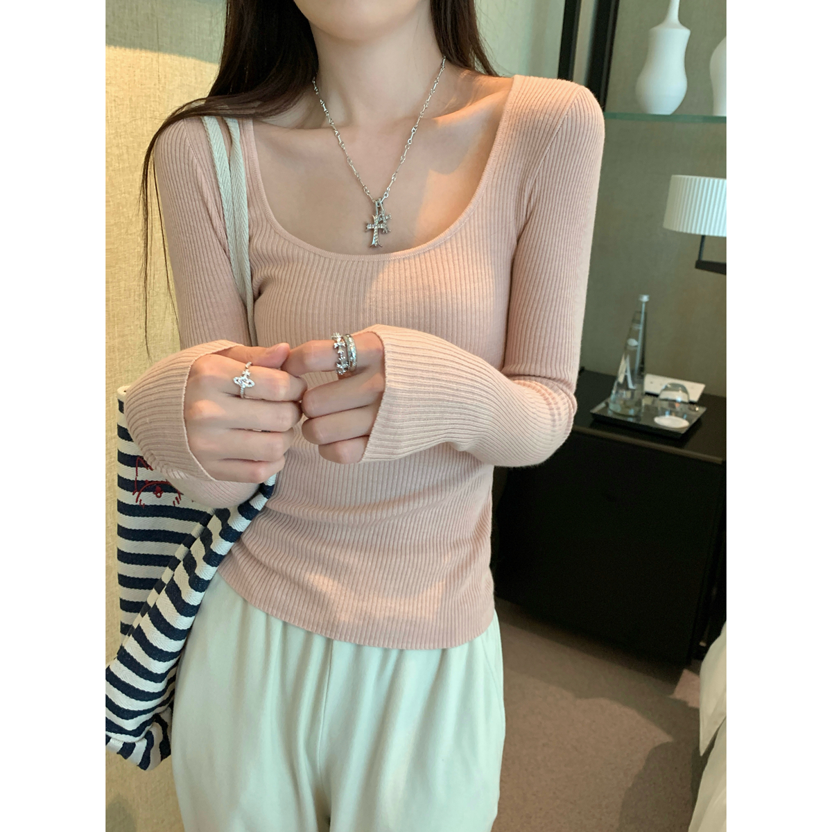가을 겨울 v- 넥 Gentle Kink Pleated 6 양모 니트 스웨터베이스 셔츠 긴 슬리브 탑
