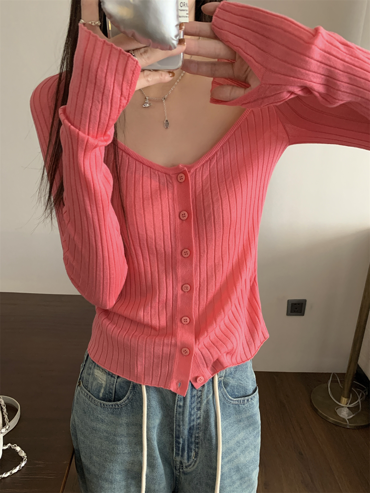 가을 가을 v-neck 기질 순수하고 슬림 한 꽃 디자인 긴 소매 티셔츠 탑