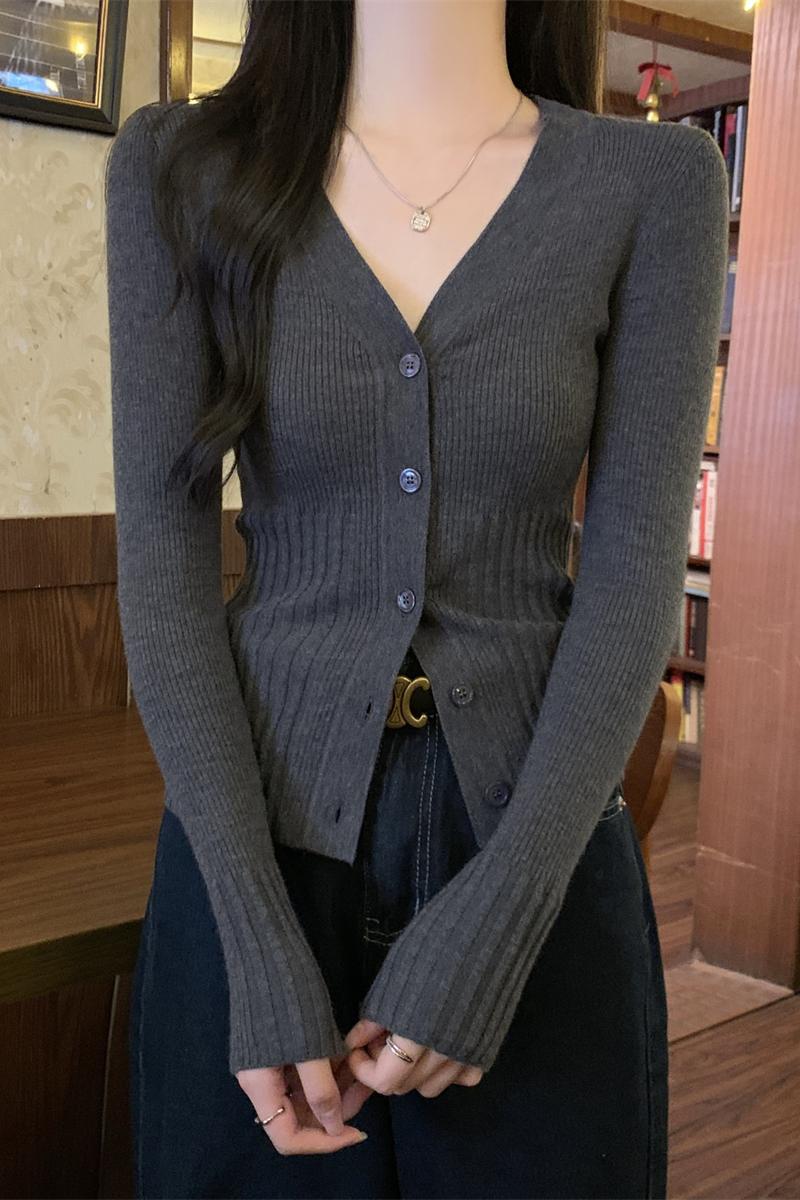 가을 겨울 대비 컬러 버튼 2 피스 6 피스 울 스웨터 긴팔 탑