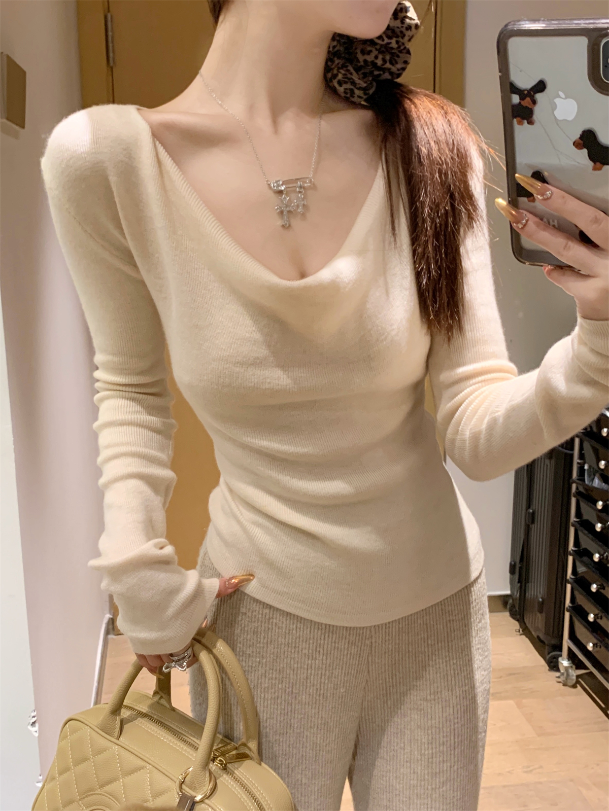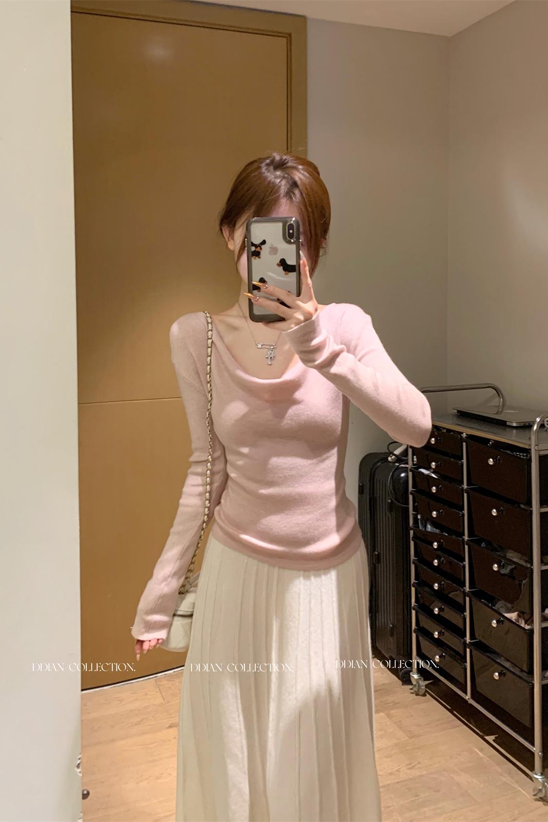 가을 새로운 스타일 느슨한 2 피스 게으르고 6 웰 스웨터베이스 긴 소매 탑