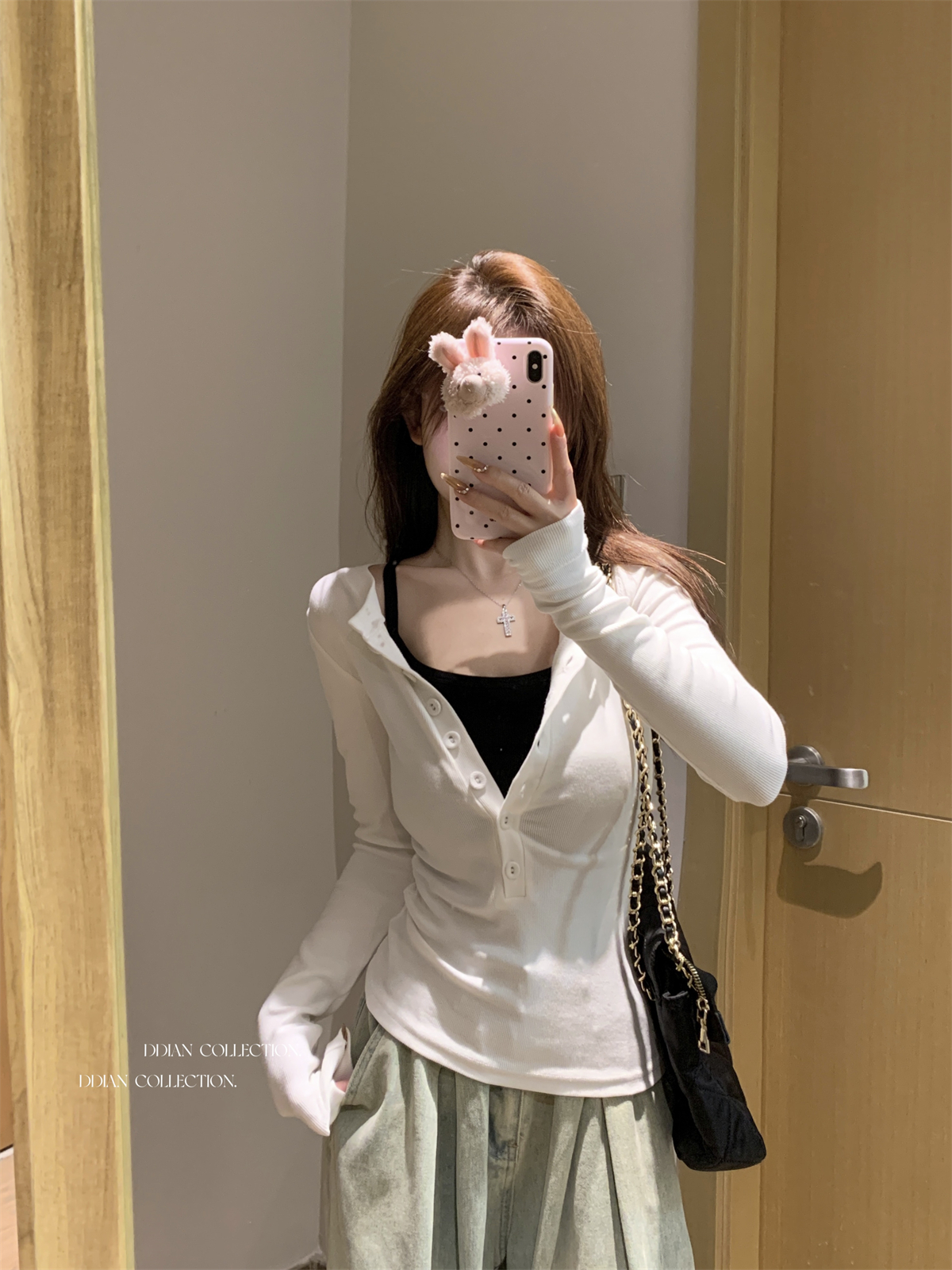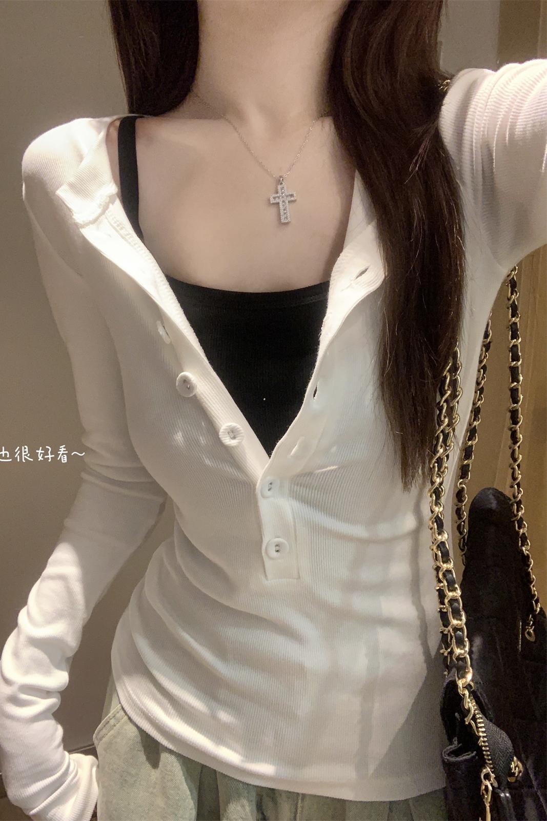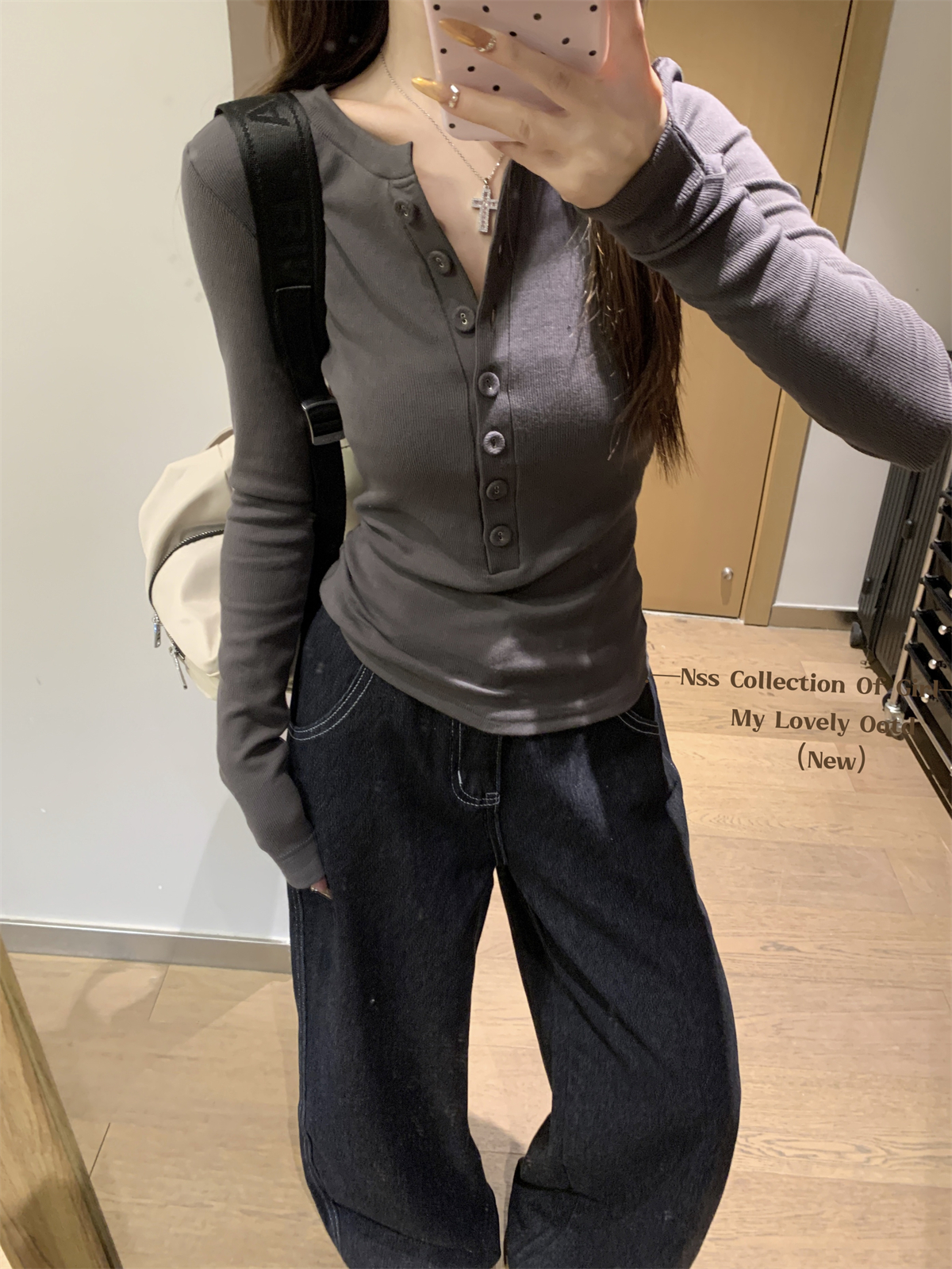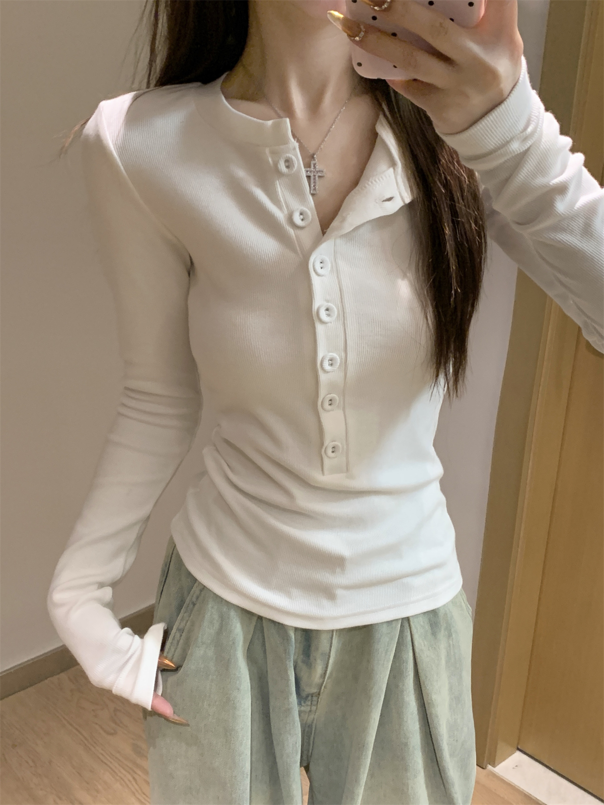 가을 겨울 v-neck 기질 아이스 시드 슬릿 버튼 디자인 니트 긴팔베이스 여성 스웨터