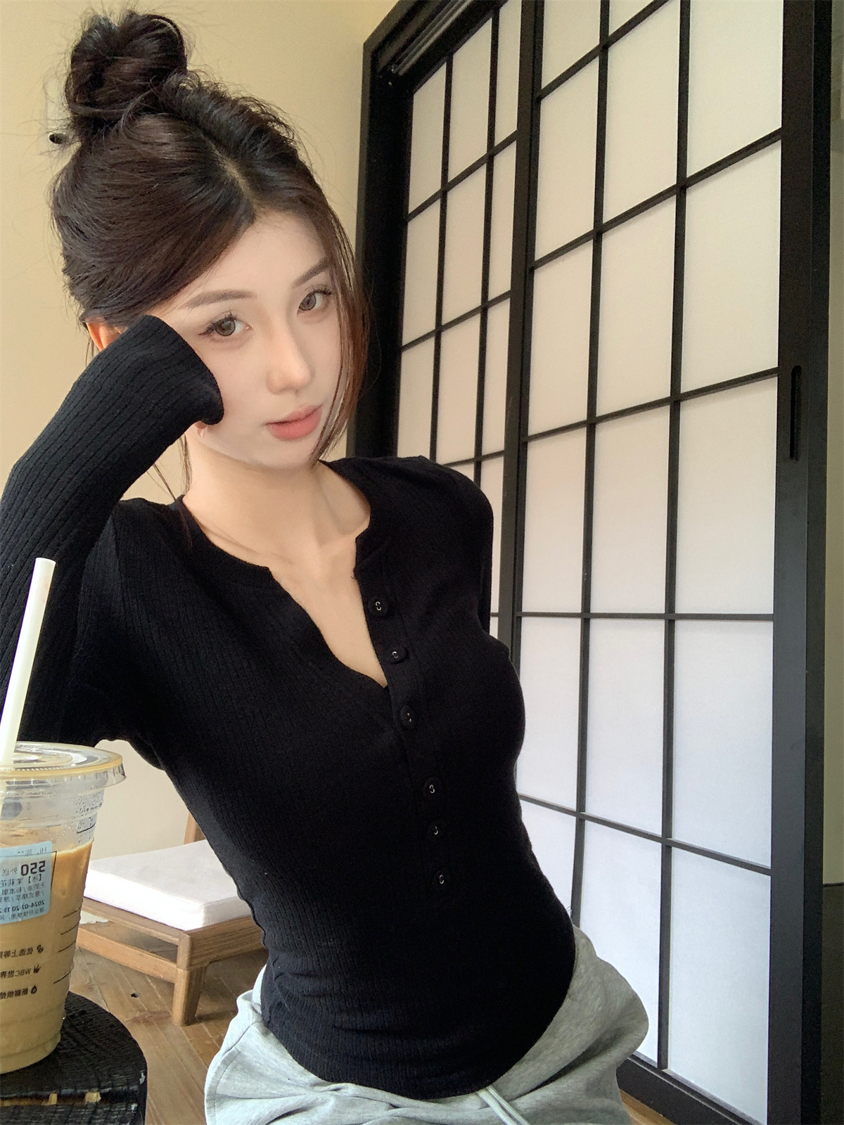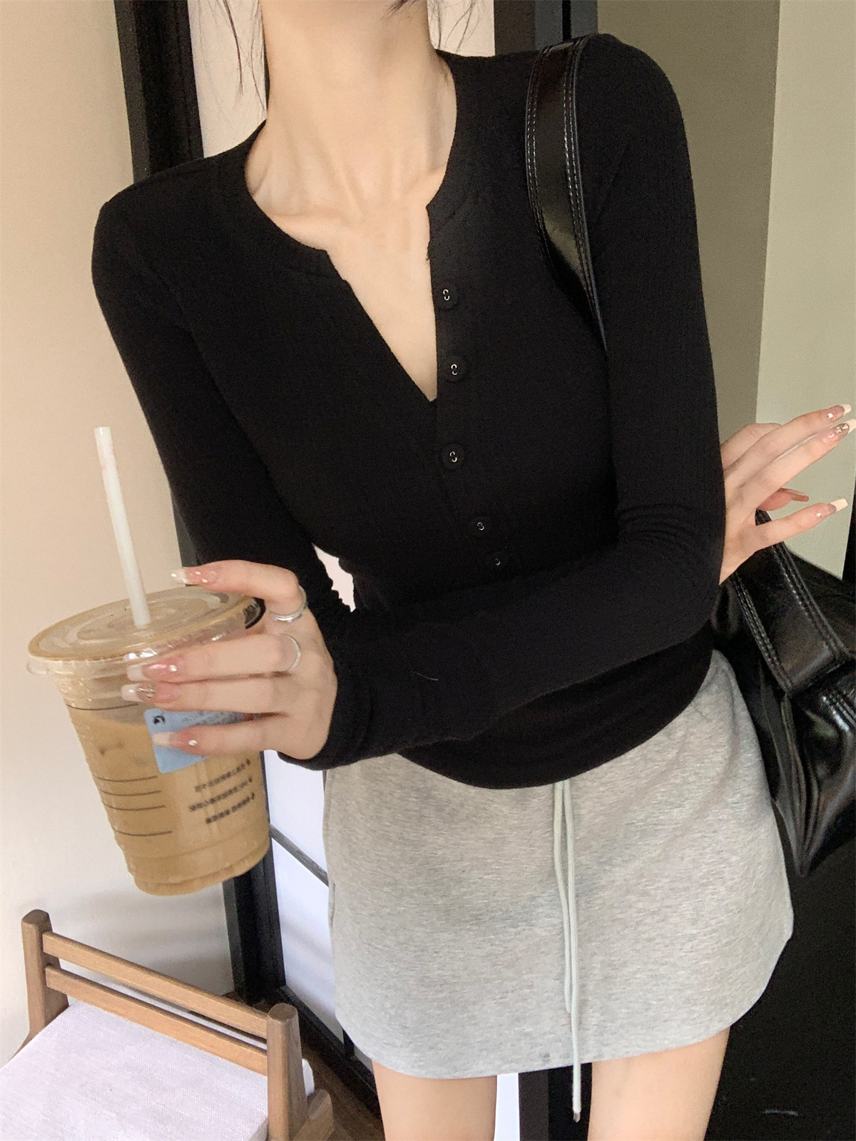 주사와 초 이른 한국 스타일 스타일 핏 핏 핏 칼라 6 양모 스웨터 긴 소매 여성