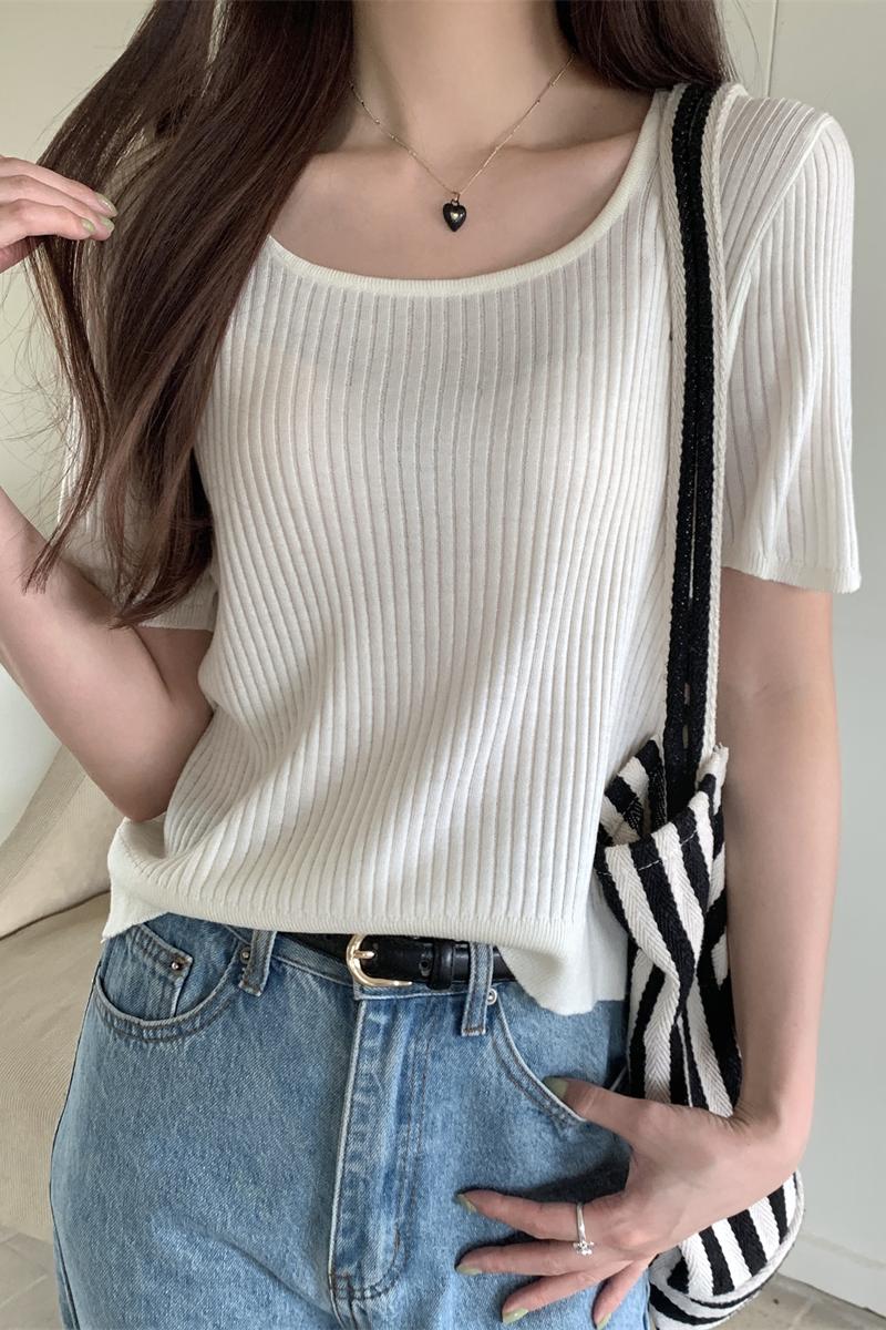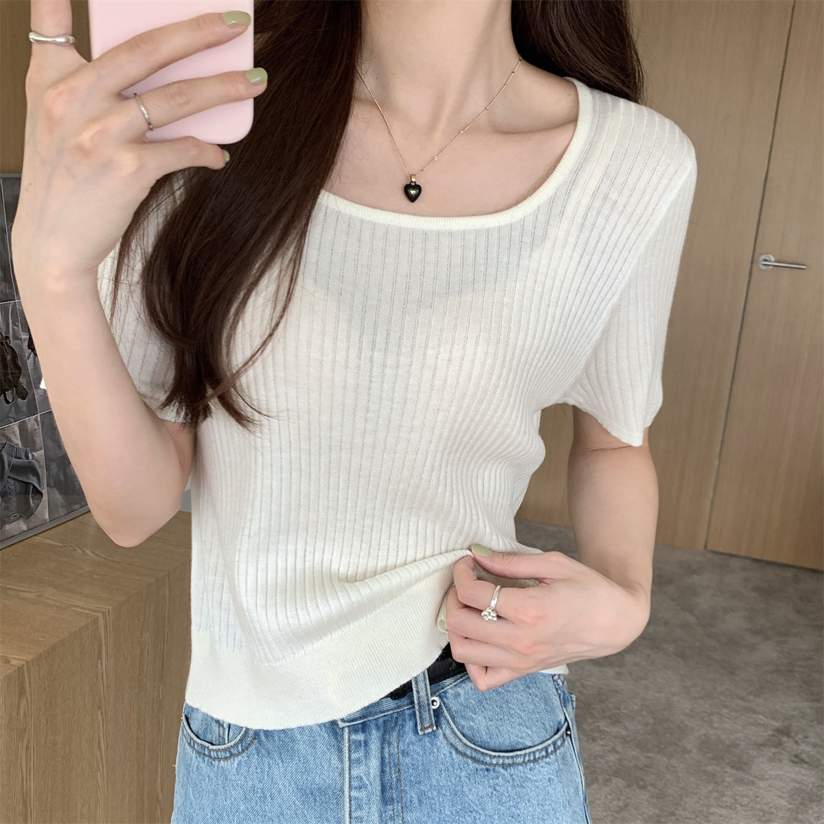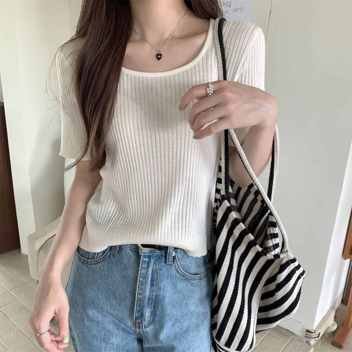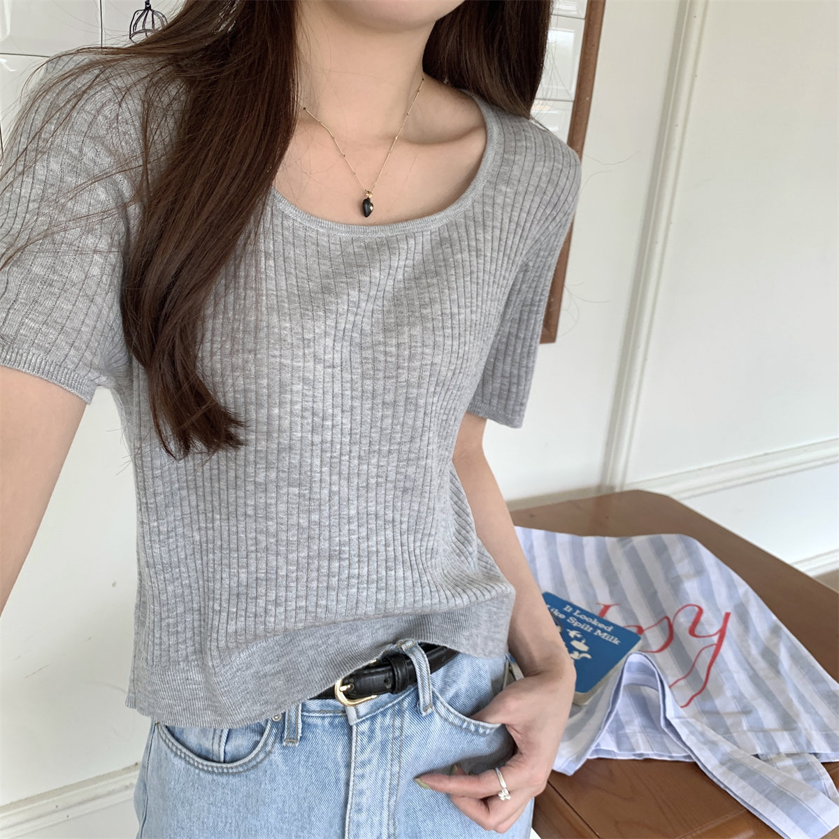 여름 여름 슬림 v- 넥 기질 대조 색상 전면 어깨 슬림면 단락 티셔츠 탑