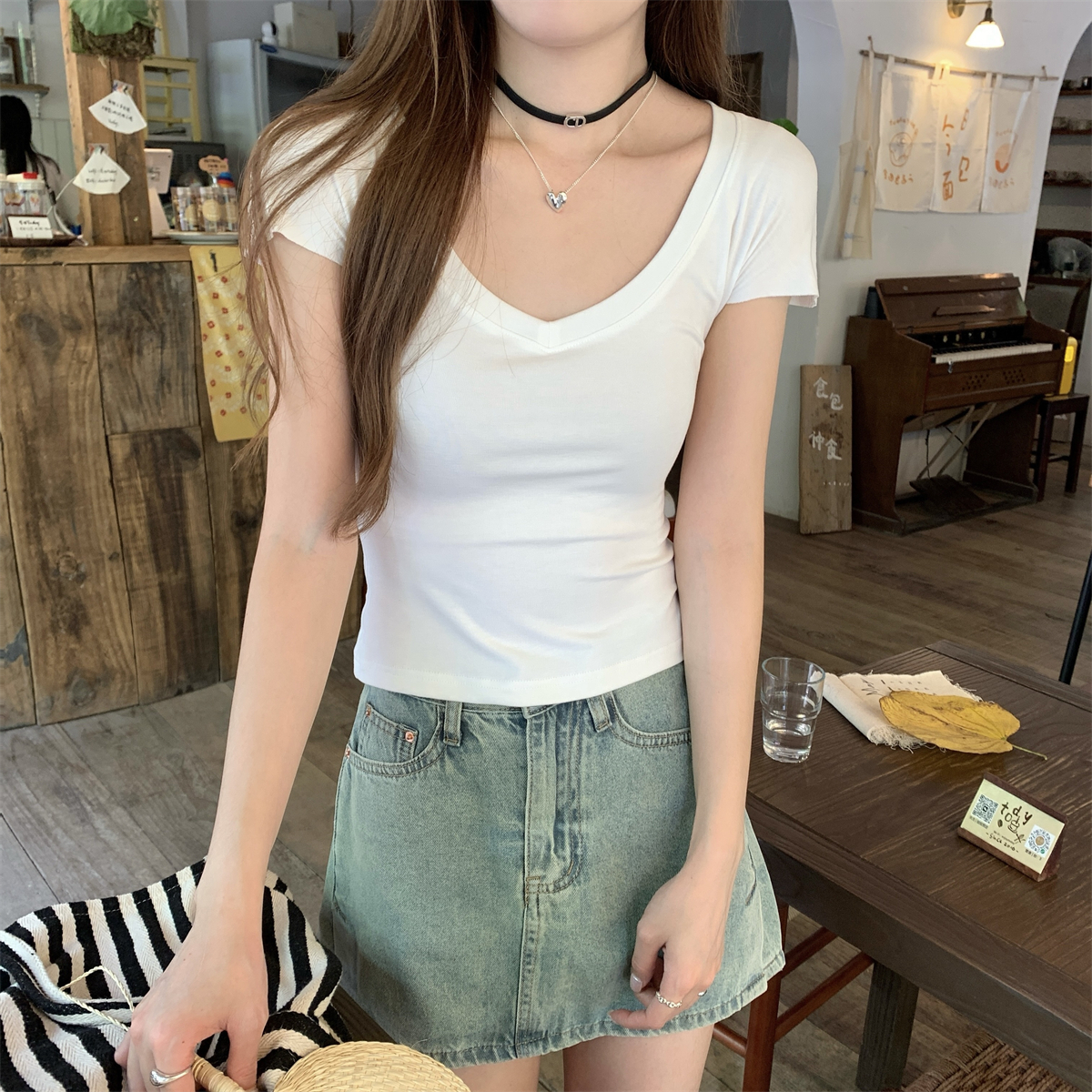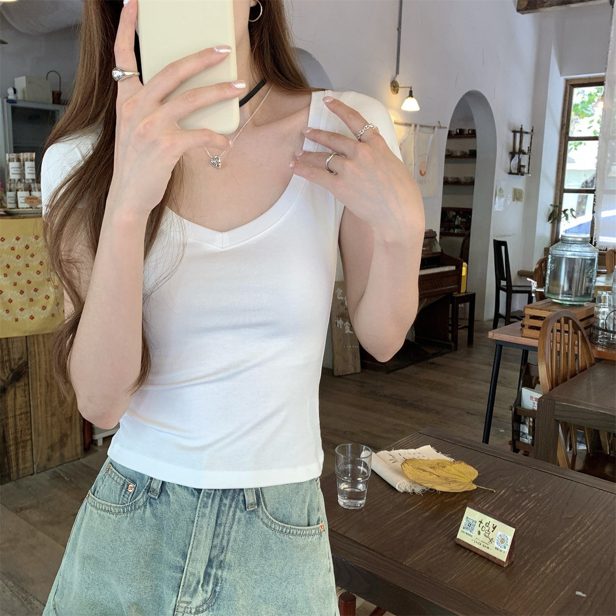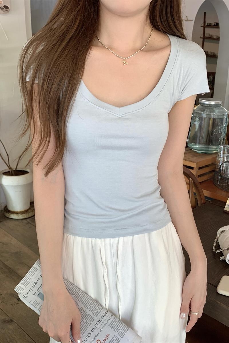 촬영 여름 여름 슬림 정사각형 네크 라인 기질 단순하고 모달 소프트 슬리브 티셔츠 탑