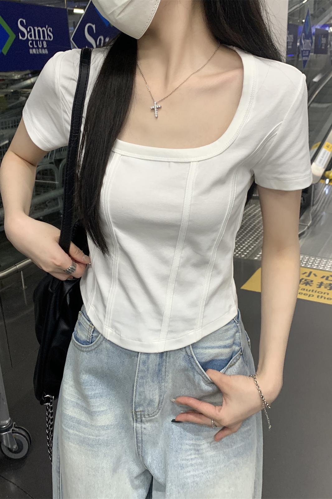 여름 스퀘어 넥 슬림 기질 버튼 디자인 6 양모 니트 조끼 탑