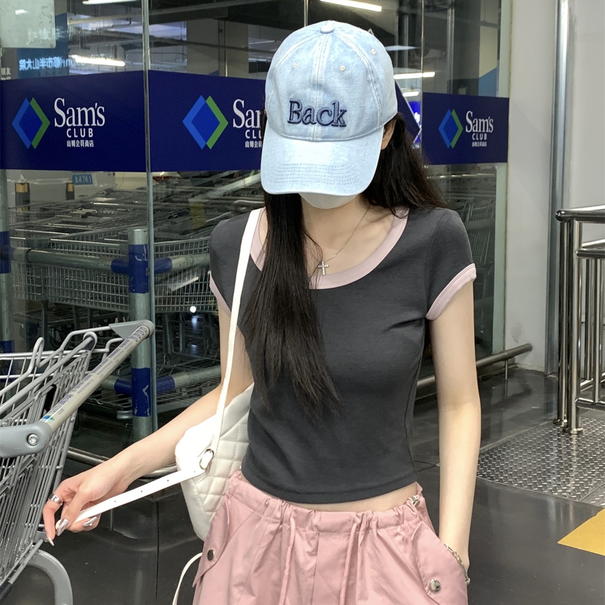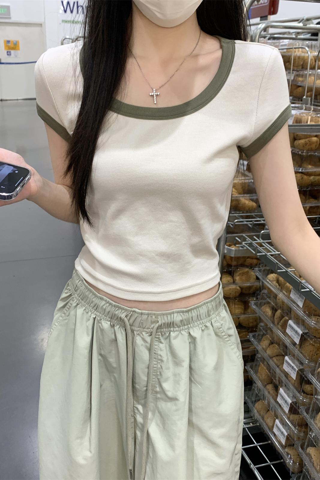 여름 한국어 버전 V- 넥 버튼 디자인 주름 슬림 어깨 슬림 한 짧은 소매 티셔츠 여성.