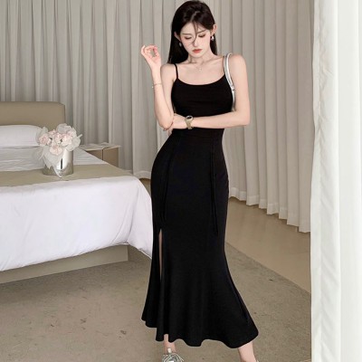 실제 저렴한 새로운 프랑스 스타일 고급 고급 슬리밍 내부와 외부 낚시 테일 서스펜더 드레스