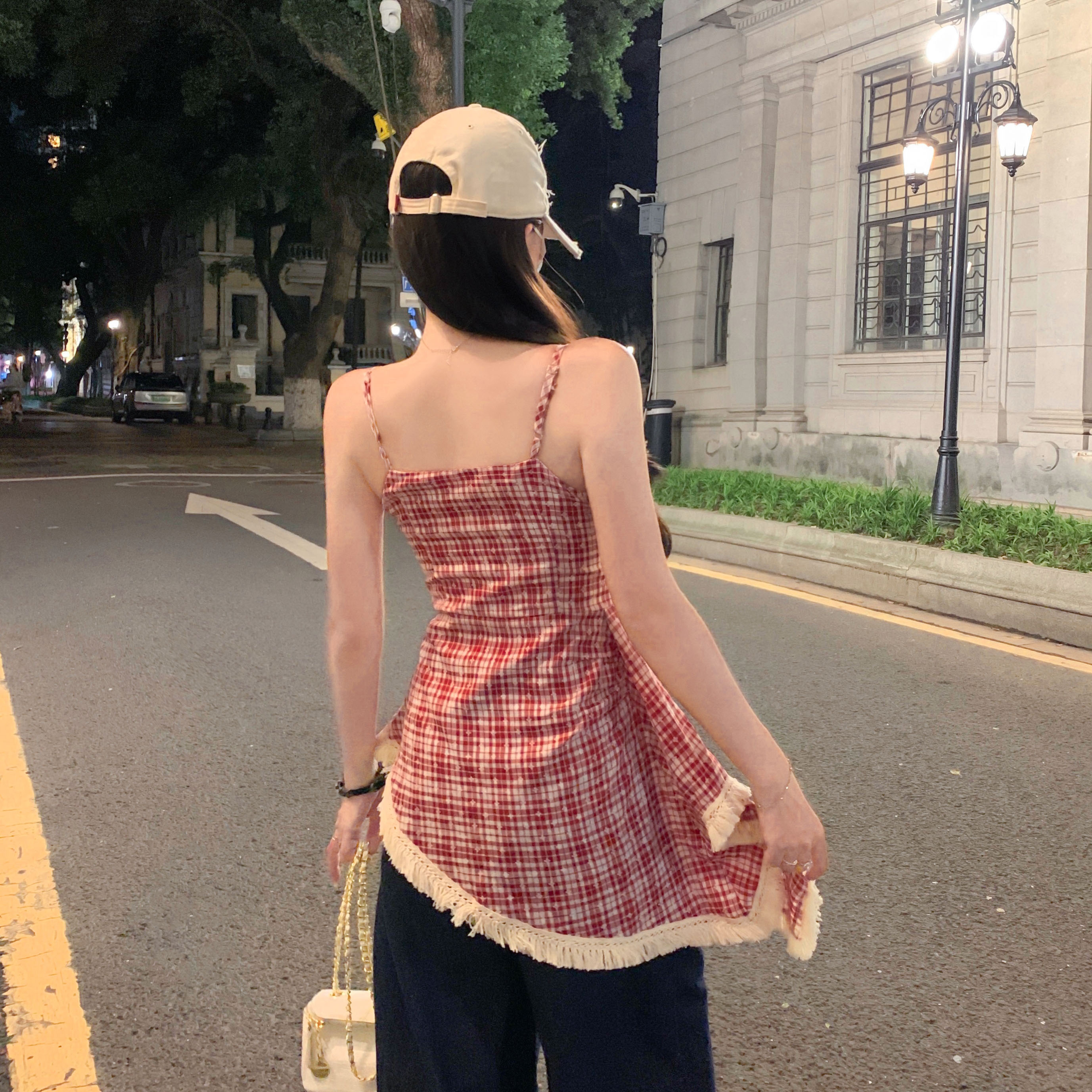 Red Plaid Tassel Servender Skirt for Women 2025 Summer Design Slim Fit Preated Sleeveless 스 플라이 싱